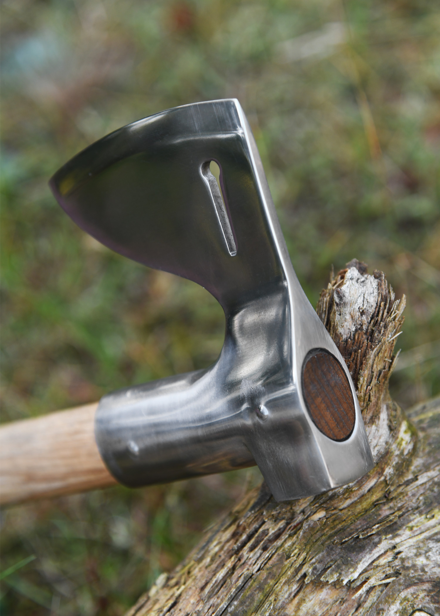 Bogenschützen trugen immer eine für den Nahkampf bei sich, und eine Axt wie diese war eine perfekte Wahl, da sie sowohl ein guter Helfer als auch eine Waffe war. Die flache Spitze war gut geeignet, um Pfähle einzuschlagen, die oft in der Verteidigungslinie verwendet wurden, und die Klinge konnte dann zum Schärfen verwendet werden. Es handelt sich um ein europäisches Grundmuster, das sowohl von der Infanterie als auch von berittenen Kriegern getragen und verwendet wurde, da es so praktisch für alle Arten von Einsätzen im Feld und im Krieg ist. Der Kopf ist aus gehärtetem Stahl und der Schaft aus Hickoryholz. Ergänzen Sie Ihre Sammlung um dieses hochfunktionale Stück .