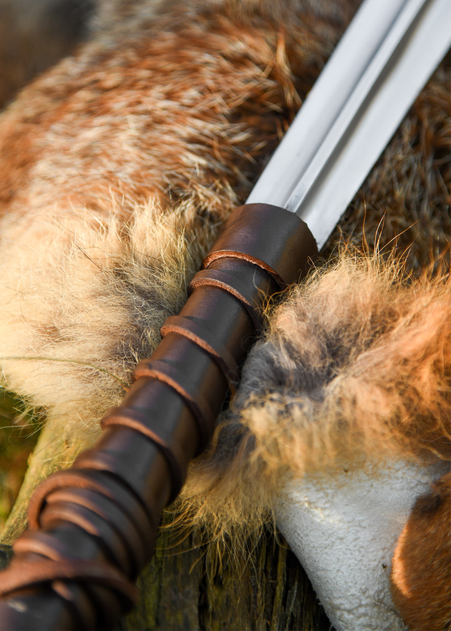 - Griffmaterial: Holz, mit Leder umwickelt