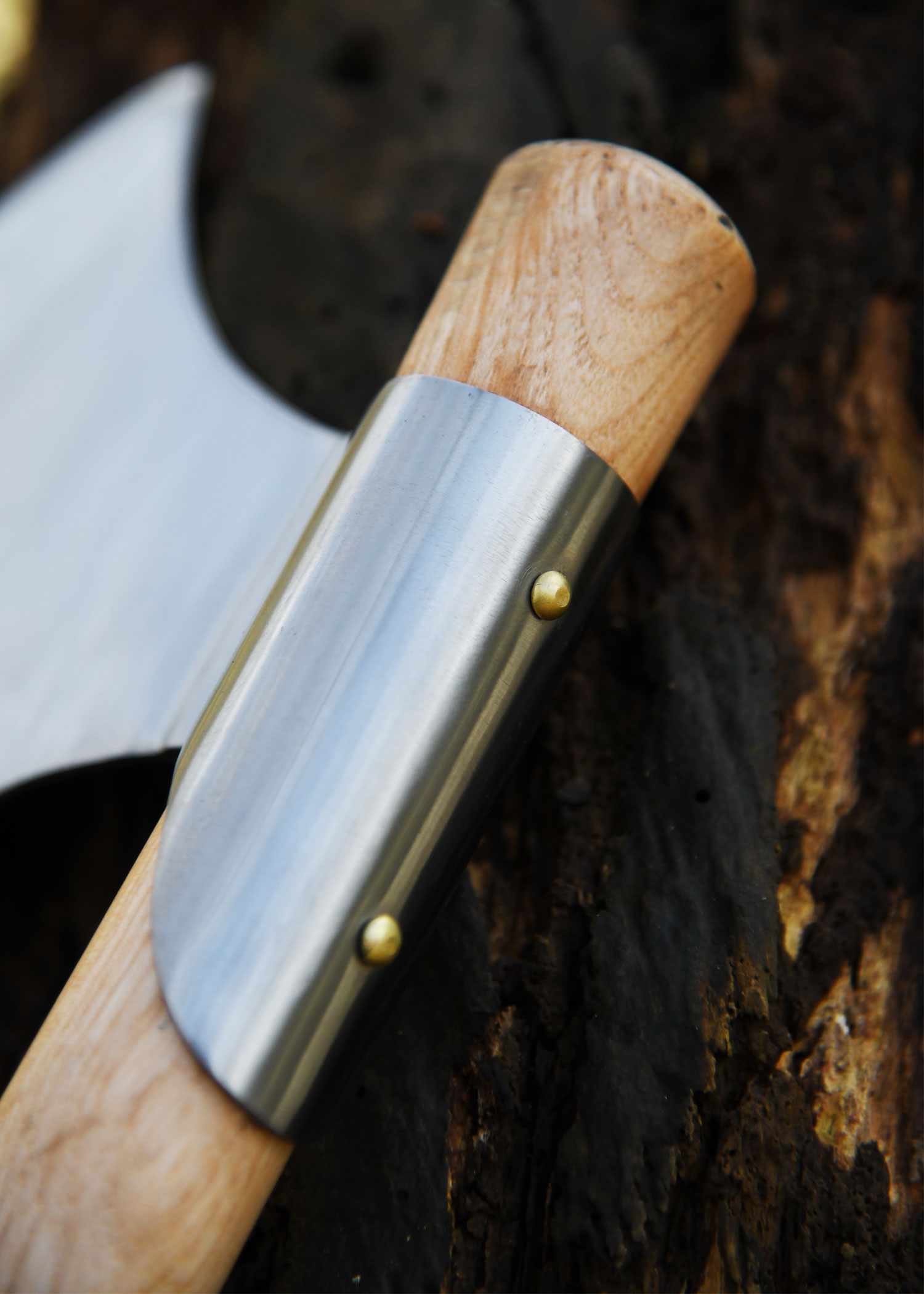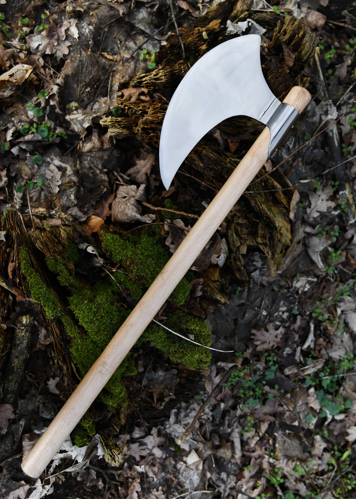 Dekorative Bartaxt mit Schaft aus Eschenholz und aus Stahl.