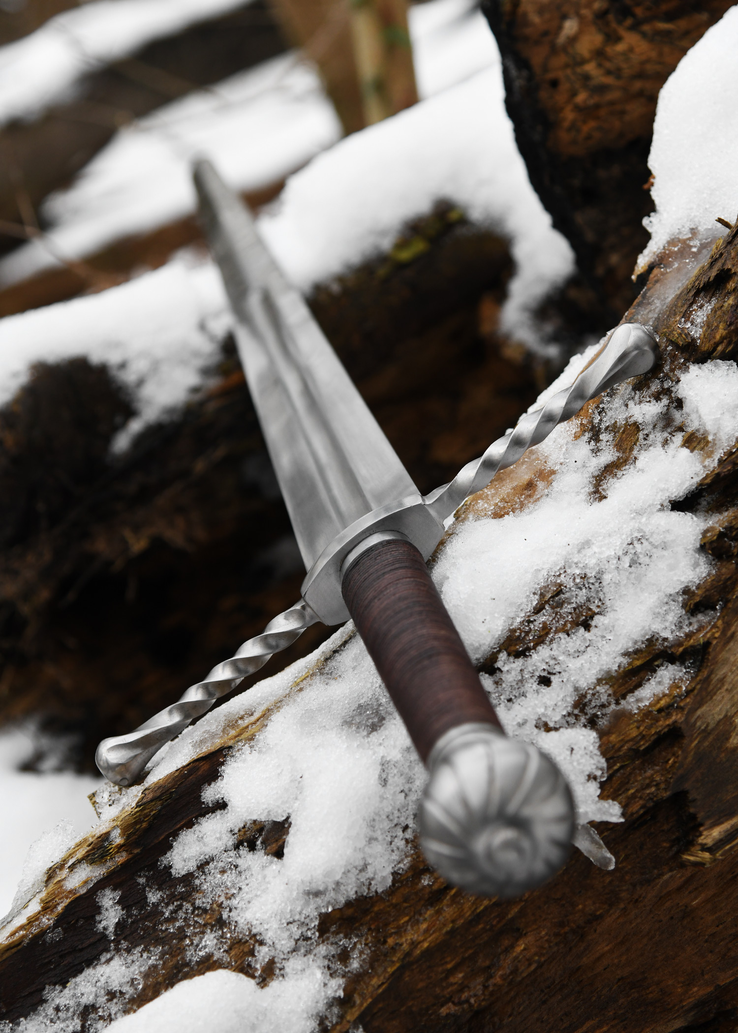 Diese schaukampftaugliche Rekonstruktion ist ausschließlich in Handarbeit gefertigt. Die gerade, tordierte Parierstange und der Knauf sind aus wärmebehandeltem, schmiedbarem Gusseisen. Die in Öl auf ca. 48-50 HRC gehärtete Federstahlklinge geht bis zum Knauf durch und ist dort verschraubt. Der Griff ist mit Lederband umwickelt. Die Klinge verfügt über eine ausgeprägte Hohlkehle, die fast bis zur Klingenmitte reicht und dem größere Elastizität und zugleich Leichtigkeit verleiht. Die Klingenspitze und die Schneiden sind stumpf und abgerundet.