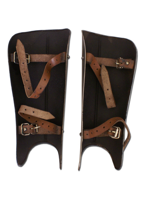 Innenseitig sind jeweils zwei sehr robuste Lederriemen mit Schnallen angenietet. Die Beinschienen sind somit individuell anpassbar. Die Farbe des Leders kann varieren. Es handelt sich um ein Paar.