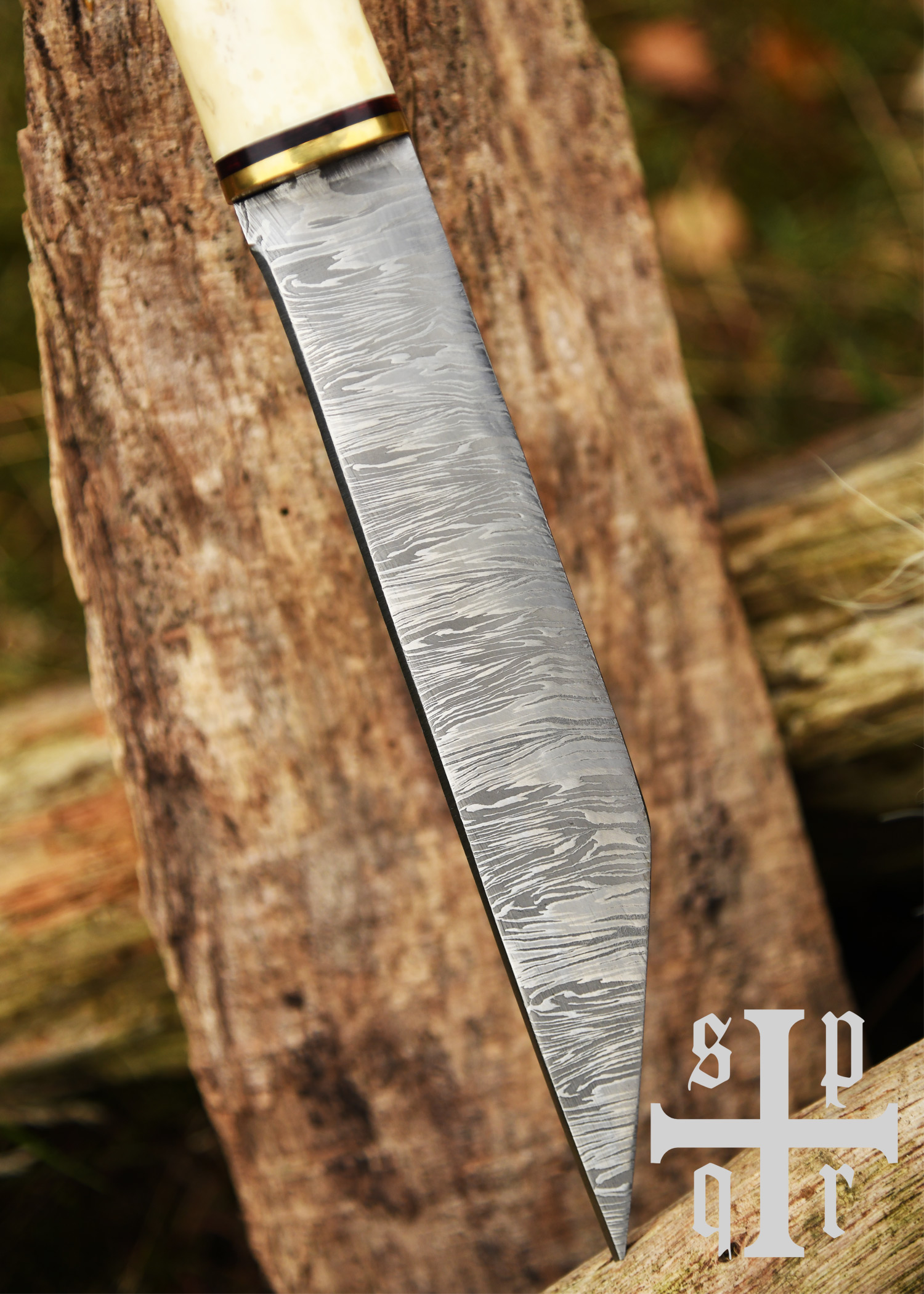 Broken Back , Wikingermesser mit Damastklinge und Holz-/Knochengriff
