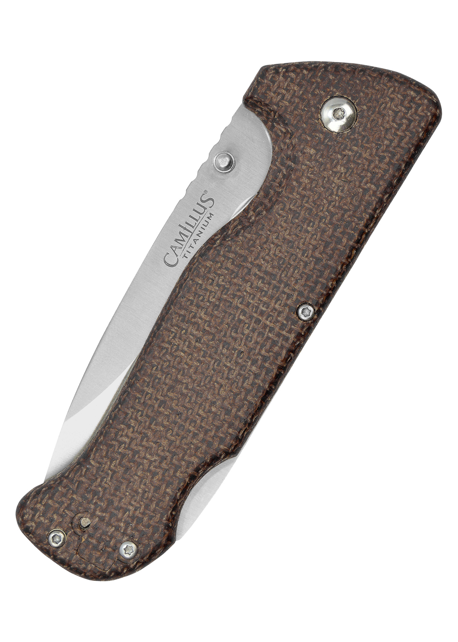Das Camillus BUSHCRAFTER misst im ausgeklappten Zustand 21,6 cm. Die 8,9 cm lange Klinge aus hochwertigem Sandvik 12C27-Stahl ist zusätzlich mit einer speziellen Titanium Bonded-Beschichtung veredelt. So sind Korrosionsbeständigkeit und eine besondere Härte garantiert. Das Einhand- ist schnell durch Finger-Pins zu öffnen und wird mit einer Lockback-Arretierung gesichert.