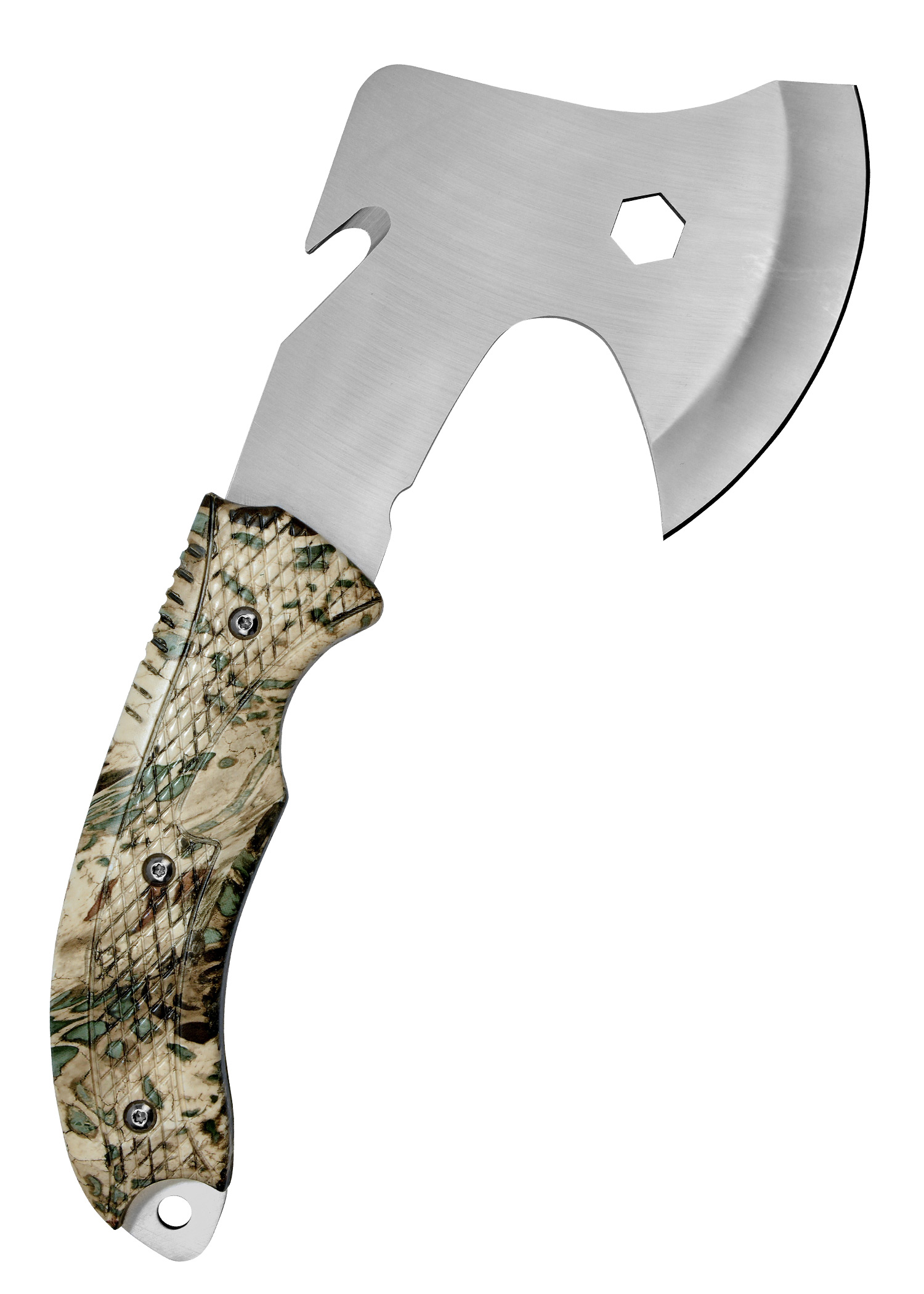 Das hochwertige Camillus RIG begeistert durch einzigartige Robustheit und höchste Qualität nicht zuletzt wegen des durchgehenden Erls. Passend zum Outdoor-Thema sorgt der Griff mit Camouflage-Design bzw. Tarnmuster (PRYM1) für einen außergewöhnlichen Look. Mit Fangriemenöse am Griff zur schnellen Befestigung am Rucksack. Lieferung komplett mit Beilscheide aus ballistischem Nylon zur sicheren Aufbewahrung und Transport.Ein unverzichtbarer Begleiter bei jeder Outdoor-Aktivität, bei der Jagd, beim Camping- oder Survival-Ausflug.