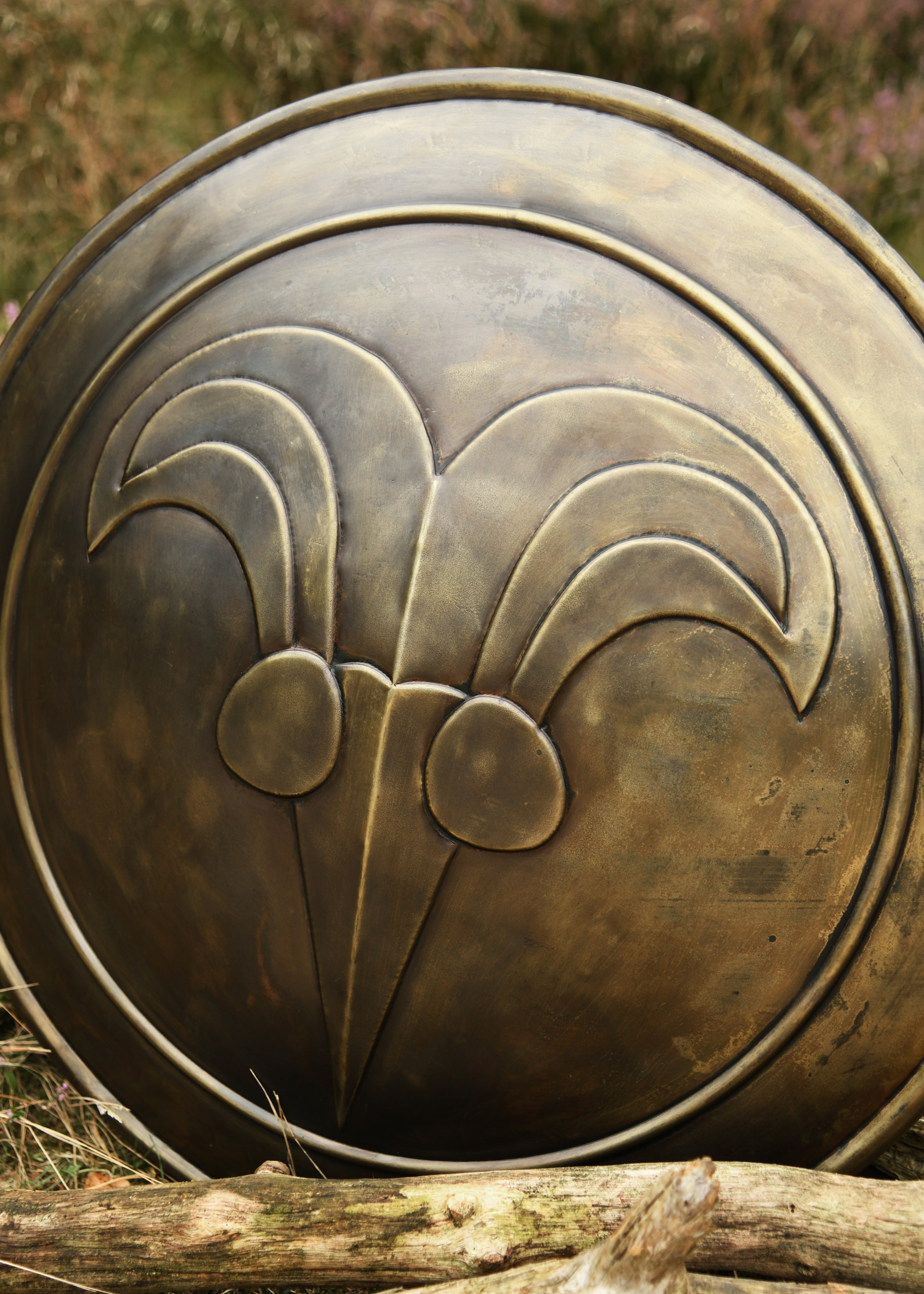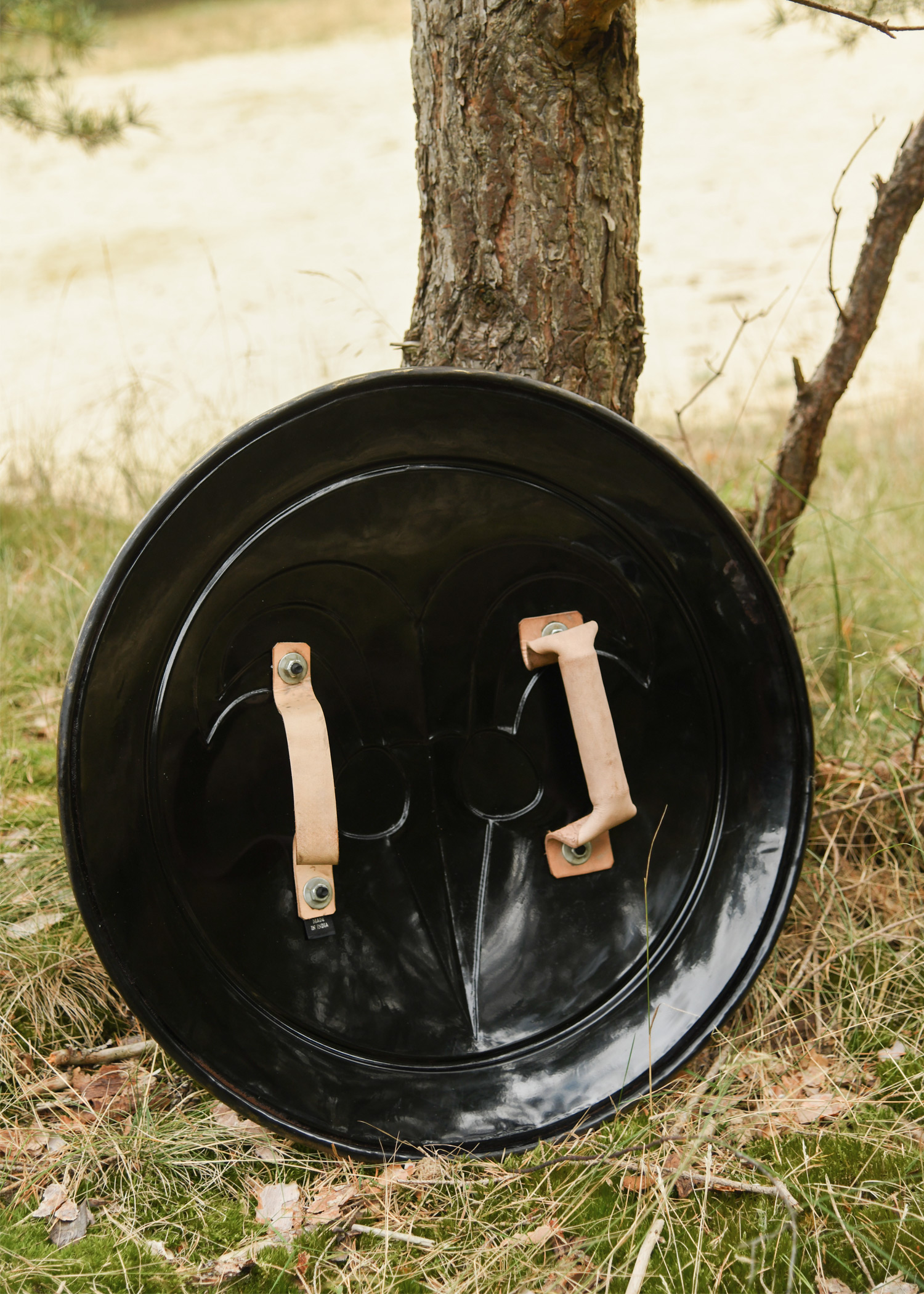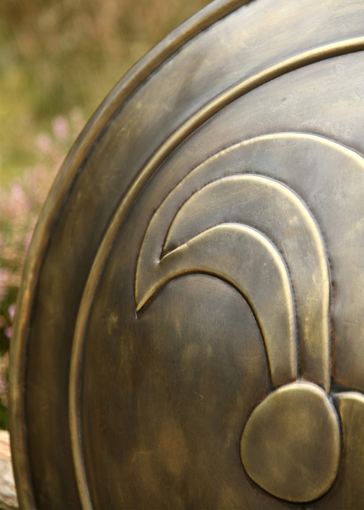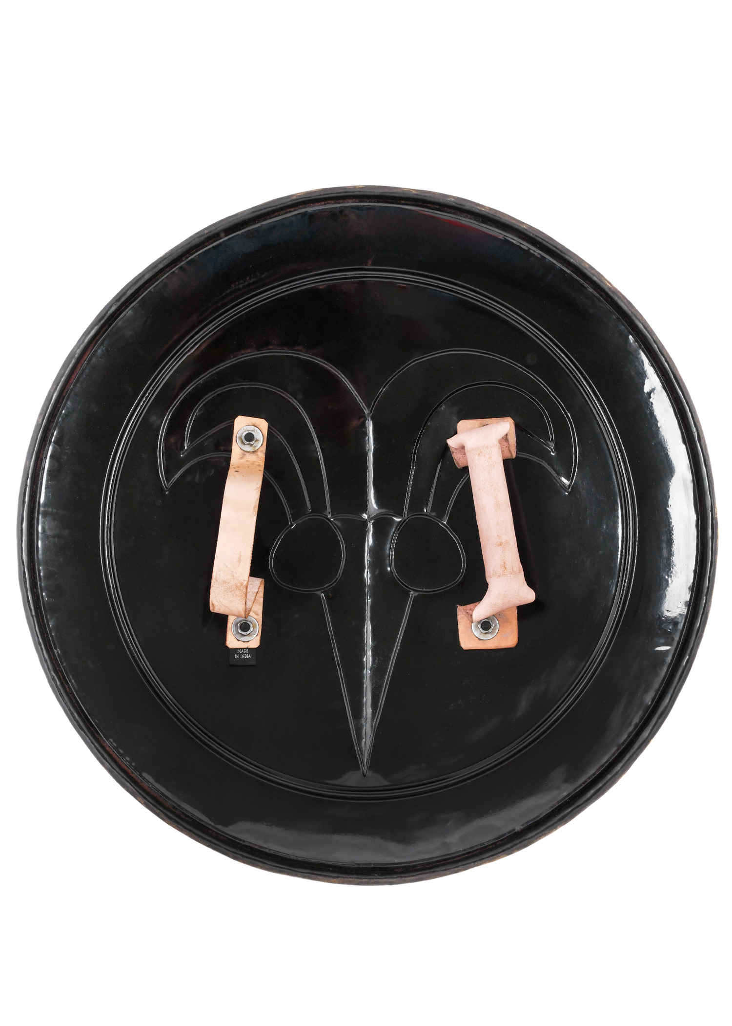 Dieser originalgetreue Nachbau des Schildes von Conan dem Barbaren gehört zu den , die der Zauberer für die Schlacht an den Hügeln zusammengestellt hat. Der Stahl Schild mit Antikbronze-Finish hat einen Durchmesser von ca. 62,5 cm und kommt mit zwei Lederriemen auf der Rückseite.