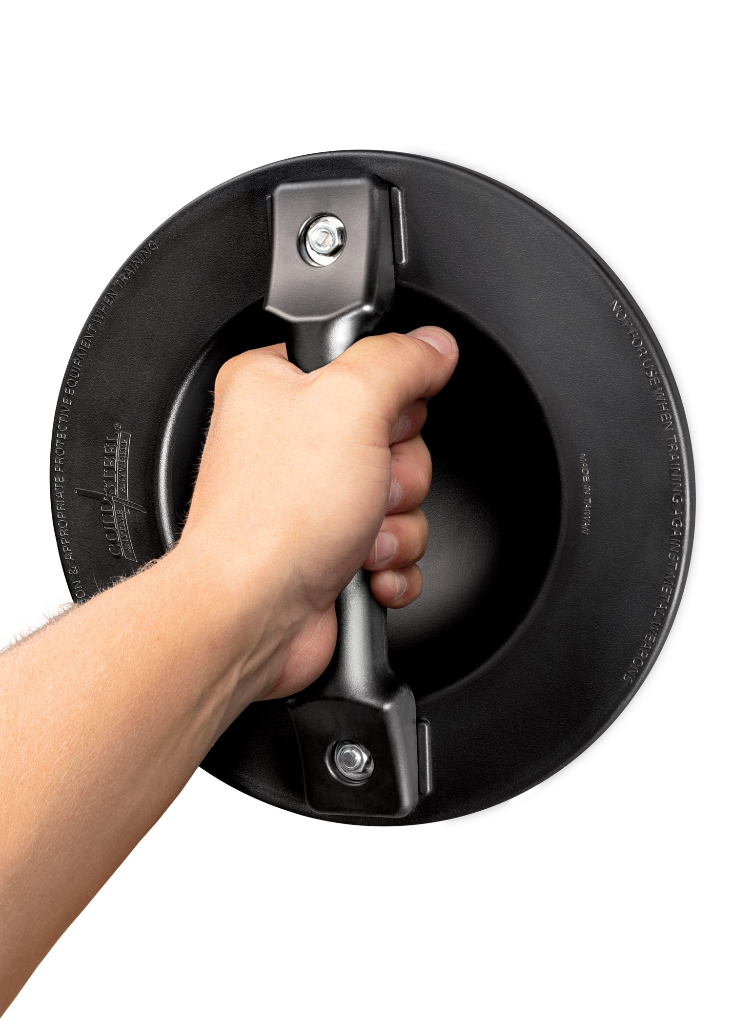 Dieser Mini-Faustschild ist kleiner und beim Ablenken von Schlägen wendiger als die größeren Rundschild-Modelle von Cold Steel® (92BKPB and 92BKPL).