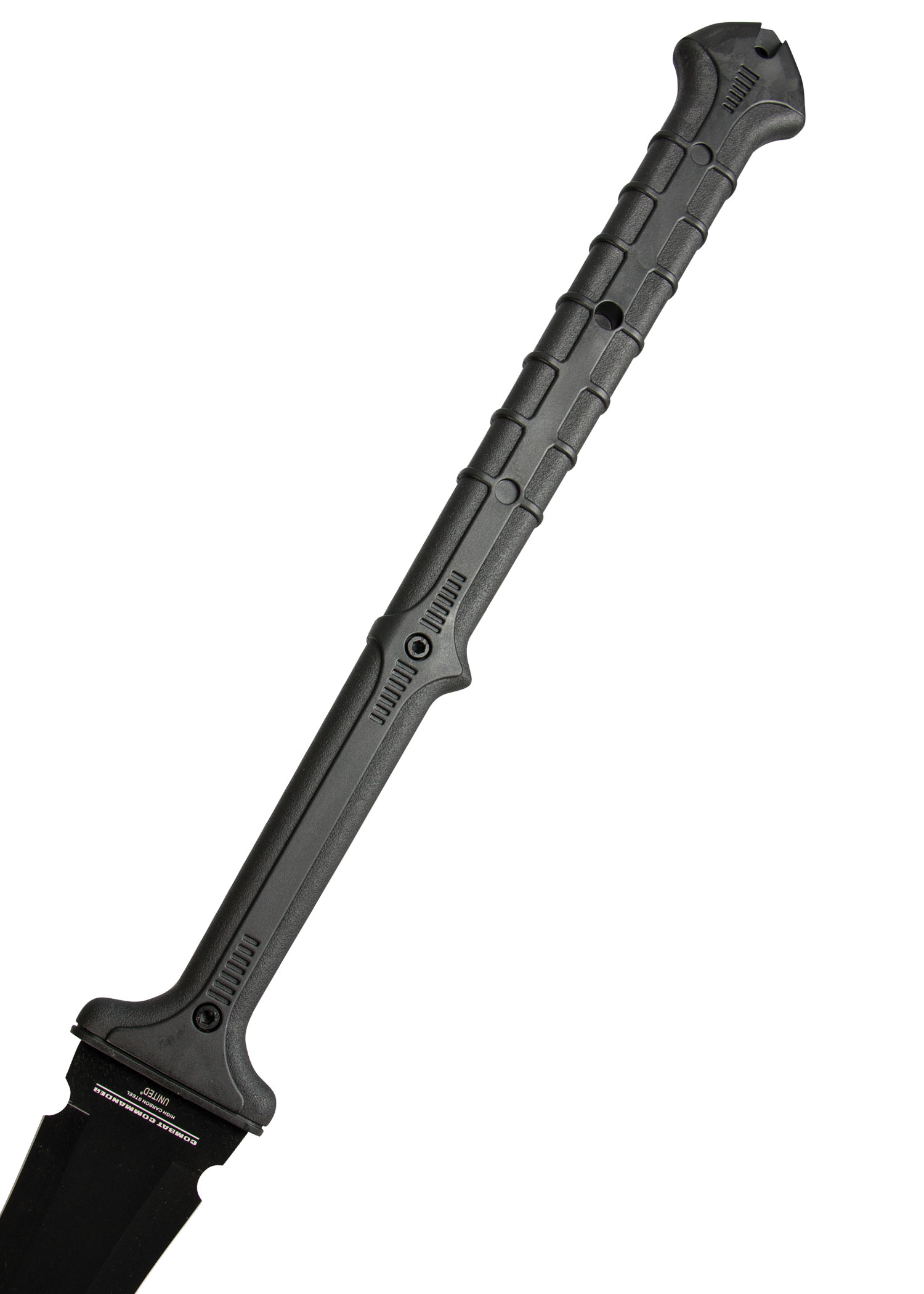 Die scharfe Klinge des Combat Commander Thai Nagi Schwertes aus dem Hause United Cutlery ist aus Karbonstahl 1065 mit schwarzer Hartbeschichtung. Der Griff besteht aus Nylonfasern und ist unfassbar zäh!