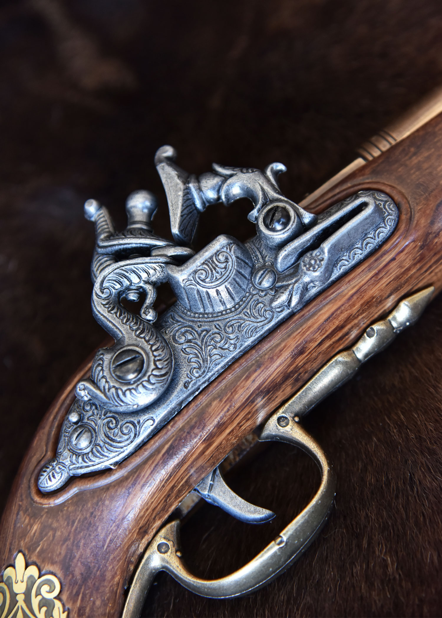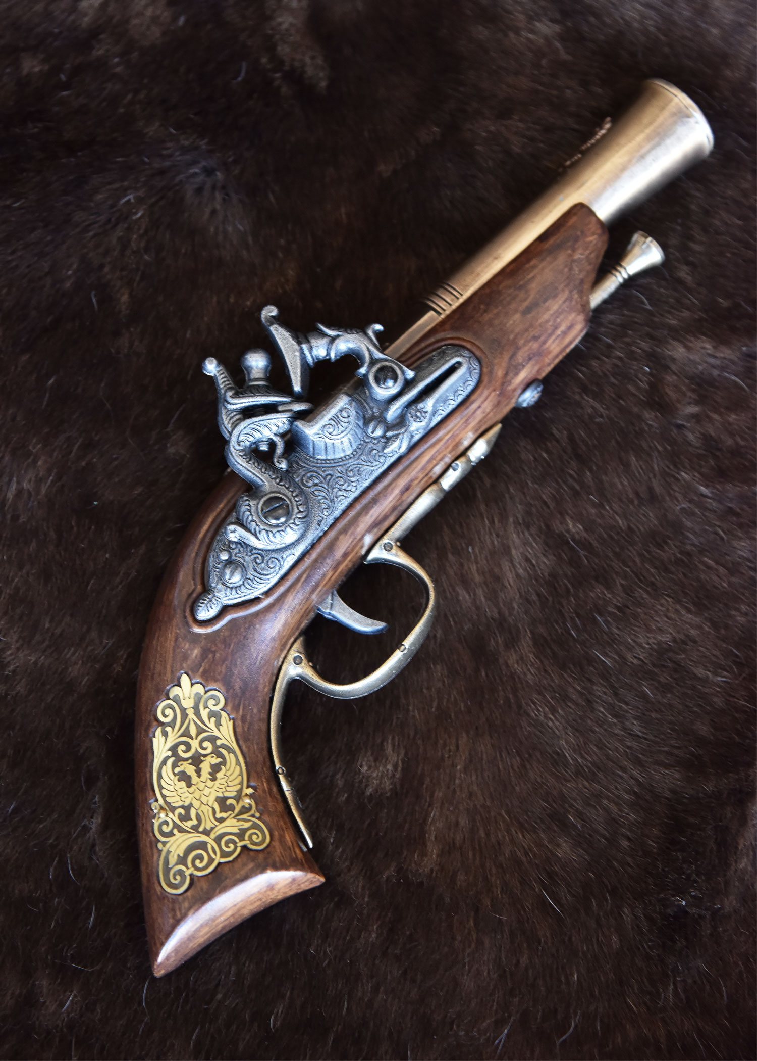Unsere Feuerwaffen-Repliken dienen ausschließlich - und Dekorationszwecken. Die Mechanik der Pistole ist voll beweglich, jedoch ist diese Reproduktion nicht funktionsfähig. Der Ladestock ist fest verbaut.