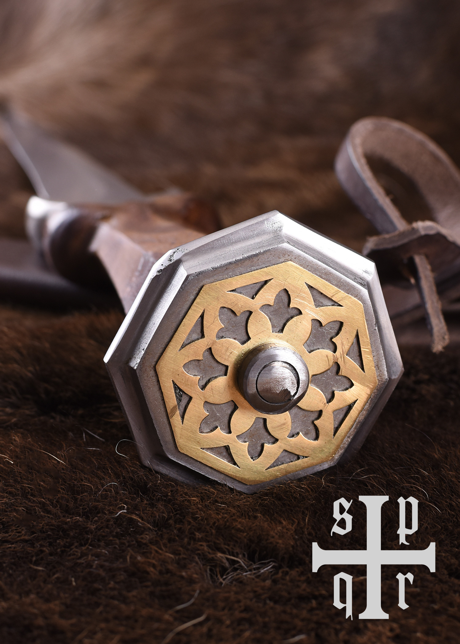 Als Vorbild für die Gestaltung dieses schönen spätmittelalterlichen Dolches diente ein auf das 15. Jh. datiertes Original aus Deutschland. Dieser besondere Dolchtyp, der als Nierendolch (engl. kidney dagger) oder auch Hodendolch (engl. bollock dagger / ballock dagger) bezeichnet wird, verdankt seinen recht eigenartigen Namen der charakteristischen Form seines Griffes, welcher am Parier mit zwei markanten kugel- bzw. eiförmigen Ausbuchtungen abschließt.