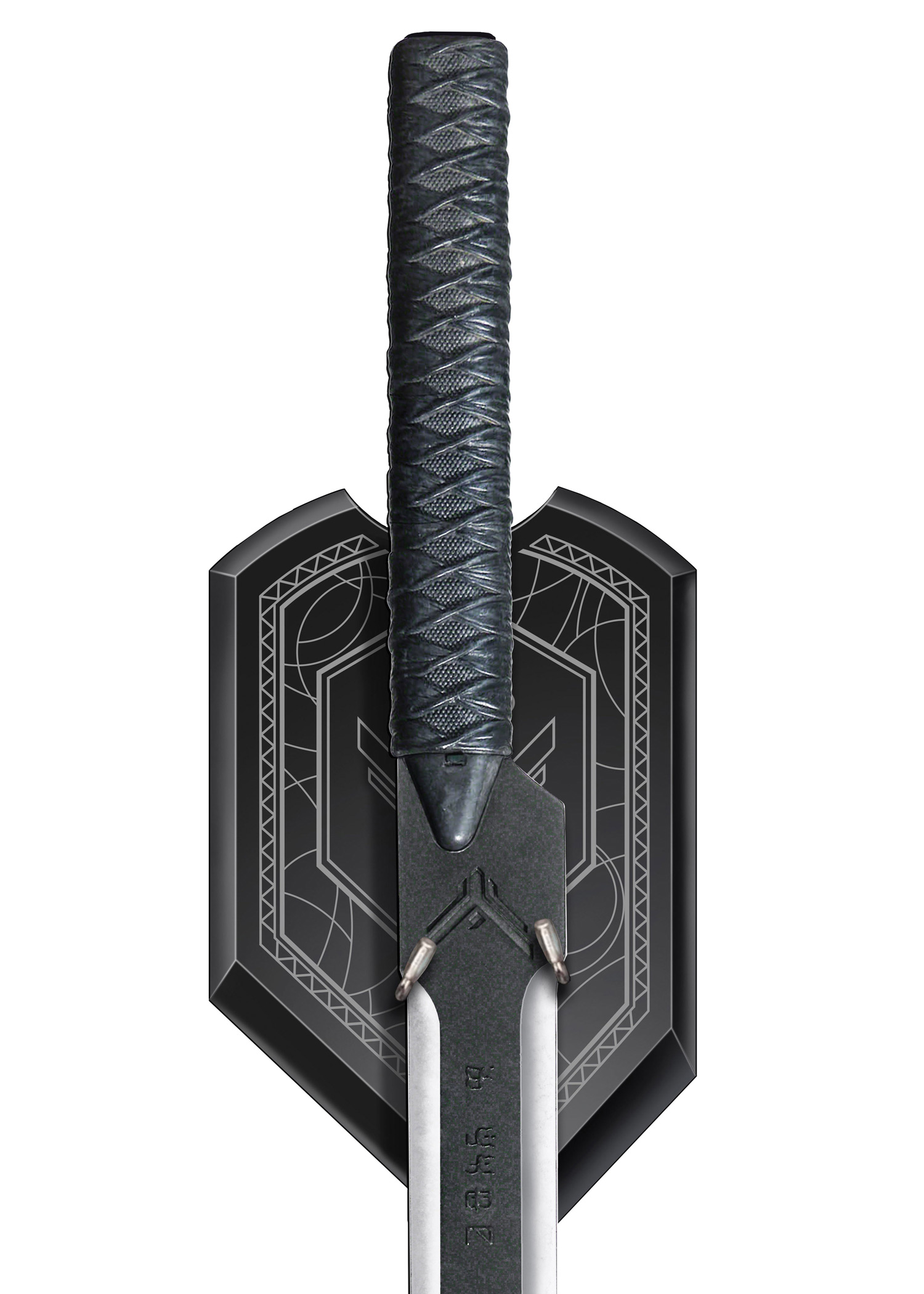 Dieses authentische und detailgetreue Sammlerstück ist eine offiziell lizensierte Replik des originalen Filmrequisits aus Dune. United Cutlery, Branchenführer im Herstellen von Film-Reproduktionen, hat das Originalschwert akribisch genau und mit den besten und hochwertigsten Materialien nachgebaut. Oberste Priorität lag dabei auf der exakten Nachbildung aller Details. Die ca. 56,8 cm lange Klinge aus rostfreiem Stahl 3Cr13 ist ca. 4 mm dick und mit einer halbglänzenden schwarzen Beschichtung versehen. Auf der Klinge sind die kaladanischen Buchstaben TVWYZ eingraviert, ein Akronym für „Triumph of Valor and Will as Your Zenith“. Um das Long Blade Schwert möglichst originalgetreu nachzubilden, ist der Griff aus spritzgegossenem Nylon mit schwarzem Lederimitat umwickelt. Direkt über dem Griff ist zudem das Falken-Siegel des Hauses Atreides eingeprägt.