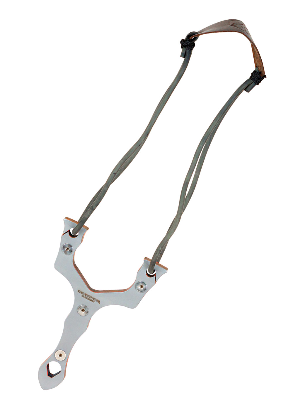 Der interessante Materialmix aus Edelstahlschalen und einem Kern aus Walnussholz machen die Condor Exoskeleton Slingshot zu einer ganz besonderen Zwille. Das Spannband ist aus extrem dehnbarem Gummi gefertigt, während das Mittelstück aus reißfestem Leder besteht.