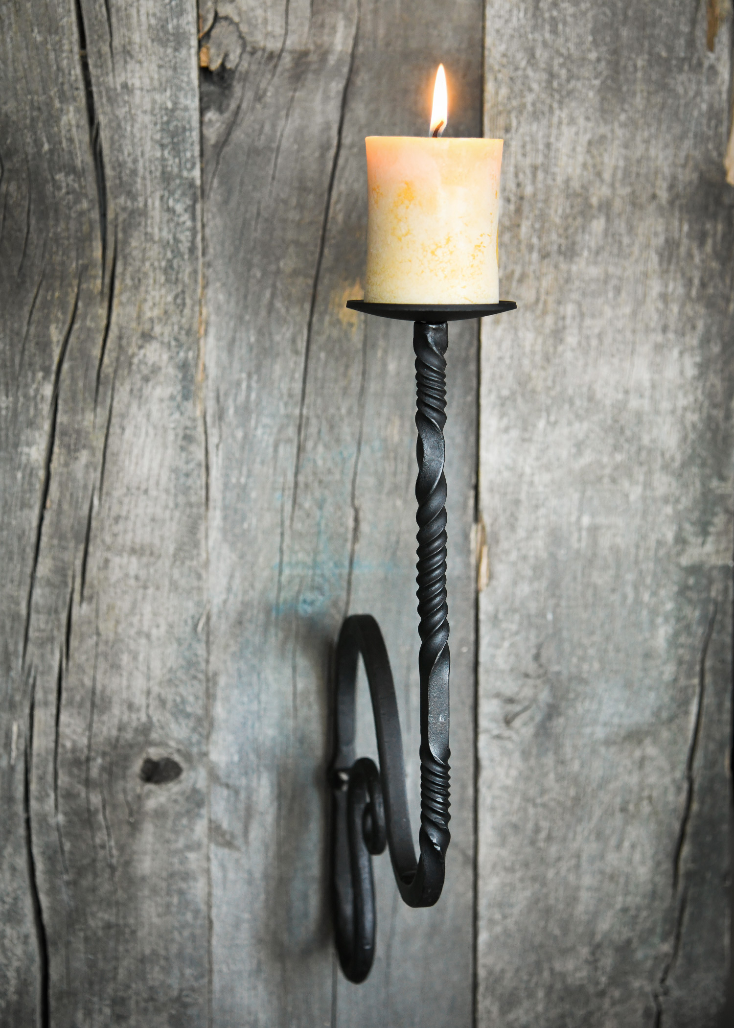 Handgeschmiedeter Wandkerzenhalter aus Schmiedeeisen
