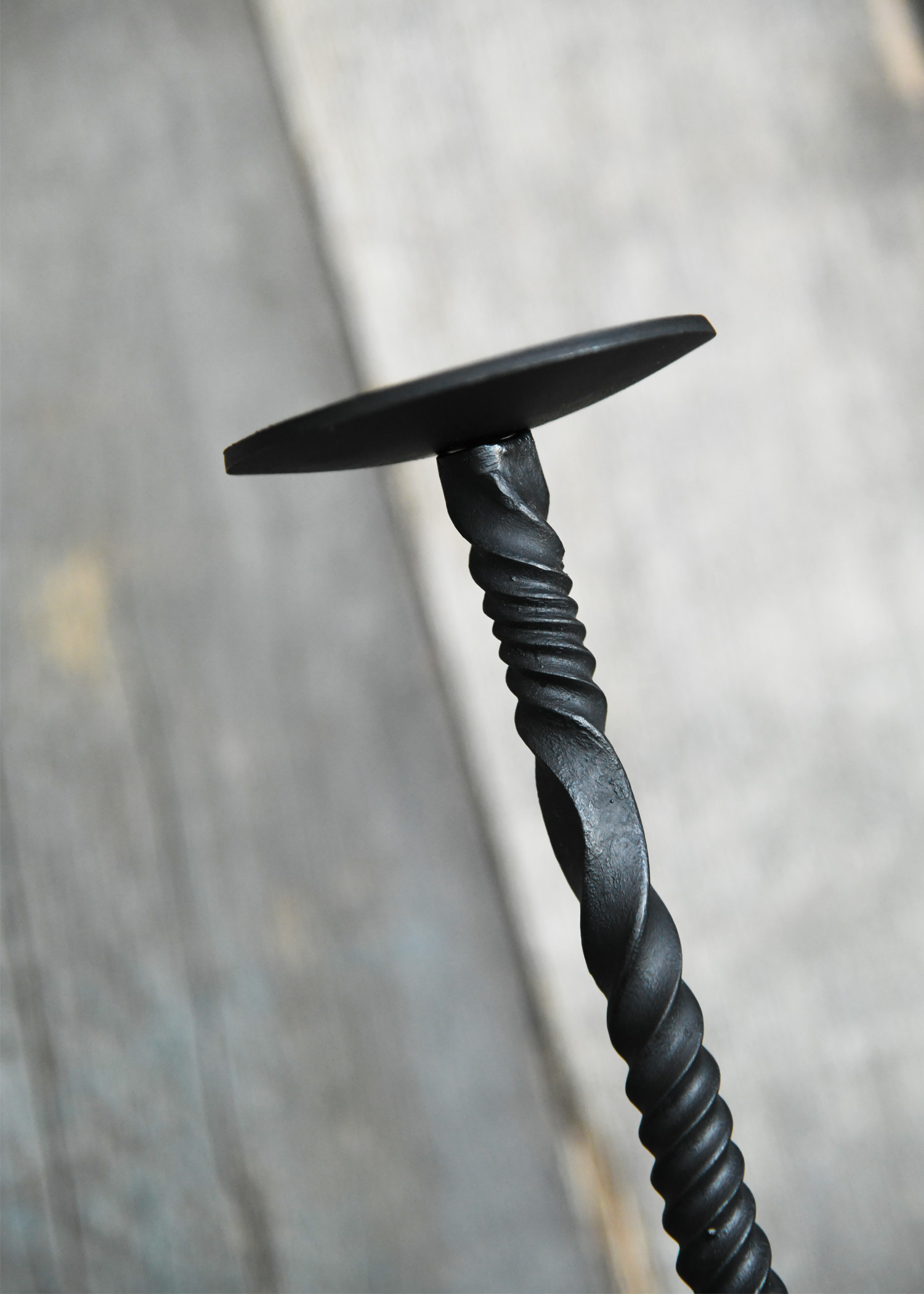 Dieser kunstvoll gefertigte Kerzenständer aus Schmiedeeisen ist die perfekte Wahl für alle, die eine rustikale und dekorative Beleuchtung für ihr Zuhause oder den nächsten Mittelaltermarkt suchen.
