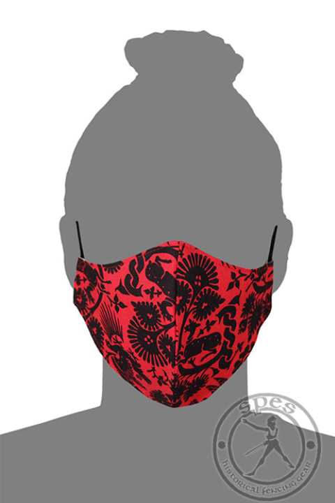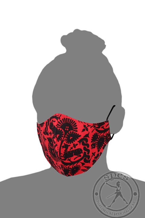 Eine wiederverwendbare dreischichtige Gesichtsmaske mit einem gemustertem Stoff. Diese Gesichtsmaske enthält einen zusätzlichen Einsatz einer Schicht Spinnvlies mit einem OEKO-TEX-Zertifikat.