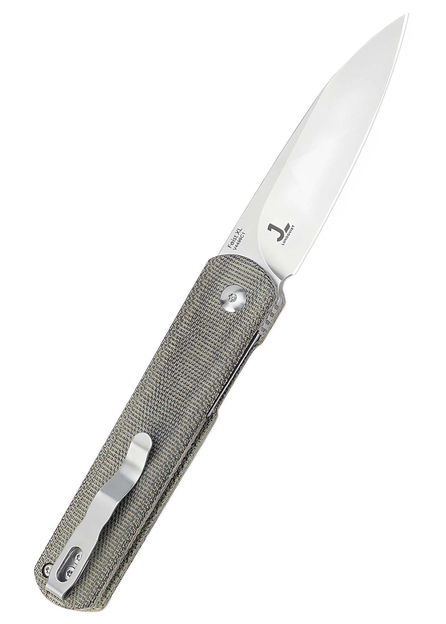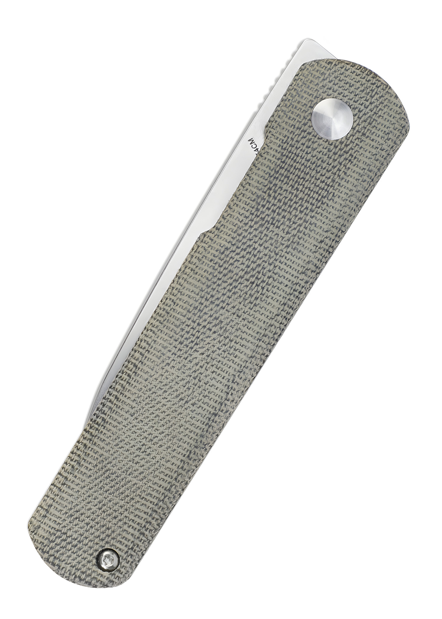 Das verfügt über eine ca. 8,5 cm lange Drop-Point Klinge aus rostfreiem 154CM Stahl, der sich durch seine hervorragende Schnitthaltigkeit und Korrosionsbeständigkeit auszeichnet. Der Griff aus grünem Micarta ist leicht, stabil und liegt auch bei Nässe rutschfest und sicher in der Hand.