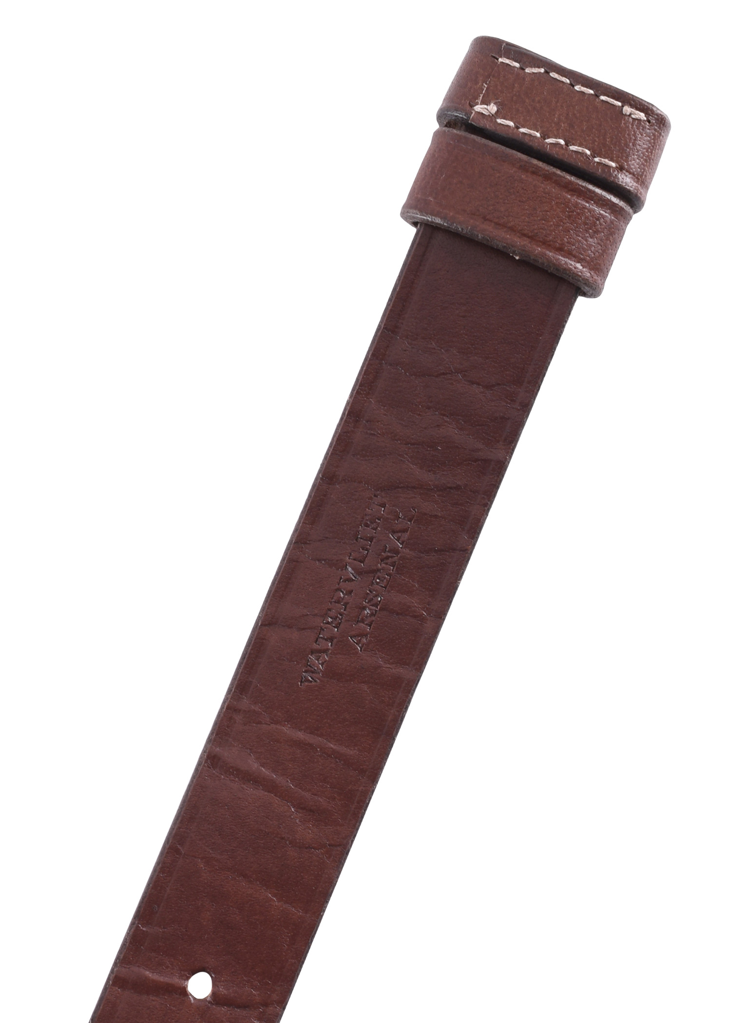 Das Design dieses ca. 180 cm langen, 3 cm breiten Riemens basiert auf einem Originalstück, das an einer 3-Band Springfield Rifle aus dem amerikanischen Bürgerkrieg (1861-1865) gefunden wurde. Der aus robustem Echtleder handgefertigte Gewehrriemen hat mehrere vorgestanzte Löcher zur individuellen Anpassung sowie einen Messinghaken, der mit zwei Kupfernieten und stabilen Nähten sicher befestigt ist. So wie das Original trägt er die Aufschrift Watervliet Arsenal.