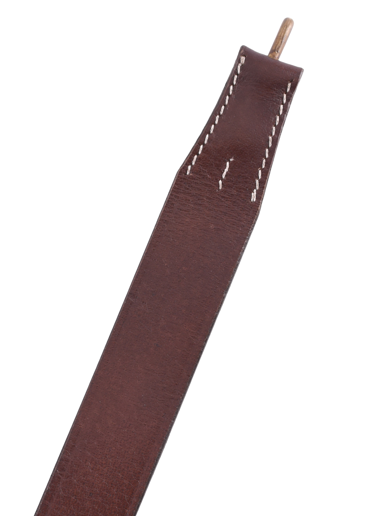 - Material: Leder (braun), Haken aus Messing, Nieten aus Kupfer