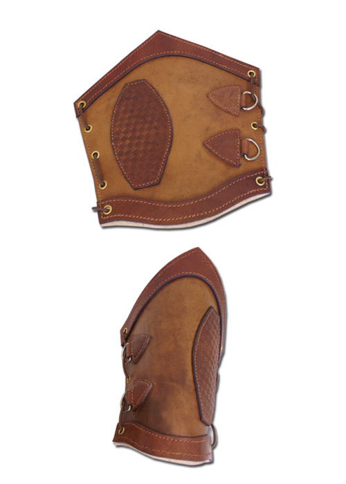 Diese sehr dekorativen Armschienen aus starkem, braunem Rindsleder bieten Schutz für die Unterarme und eignen sich ideal für LARP, Kostümierung etc. Diese Armschienen sind sehr aufwendig, robust und kunstvoll gefertigt. Auf der Innenseite sind die Armschienen zusätzlich mit sehr weichem Wildleder ausgepolstert. Die Armschienen werden mit jeweils drei mitgelieferten Lederbändern geschnürt. Das ermöglicht eine individuelle Größenanpassung. Es handelt sich um ein Paar. Maße: max. Höhe: ca. 25 cm max. Breite: ca. 23 cm Lederstärke: ca. 5 mm Gewicht: ca. 0,4 kg, das Paar
