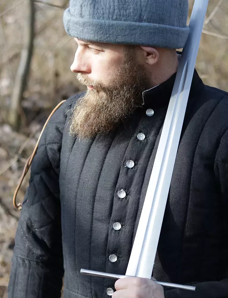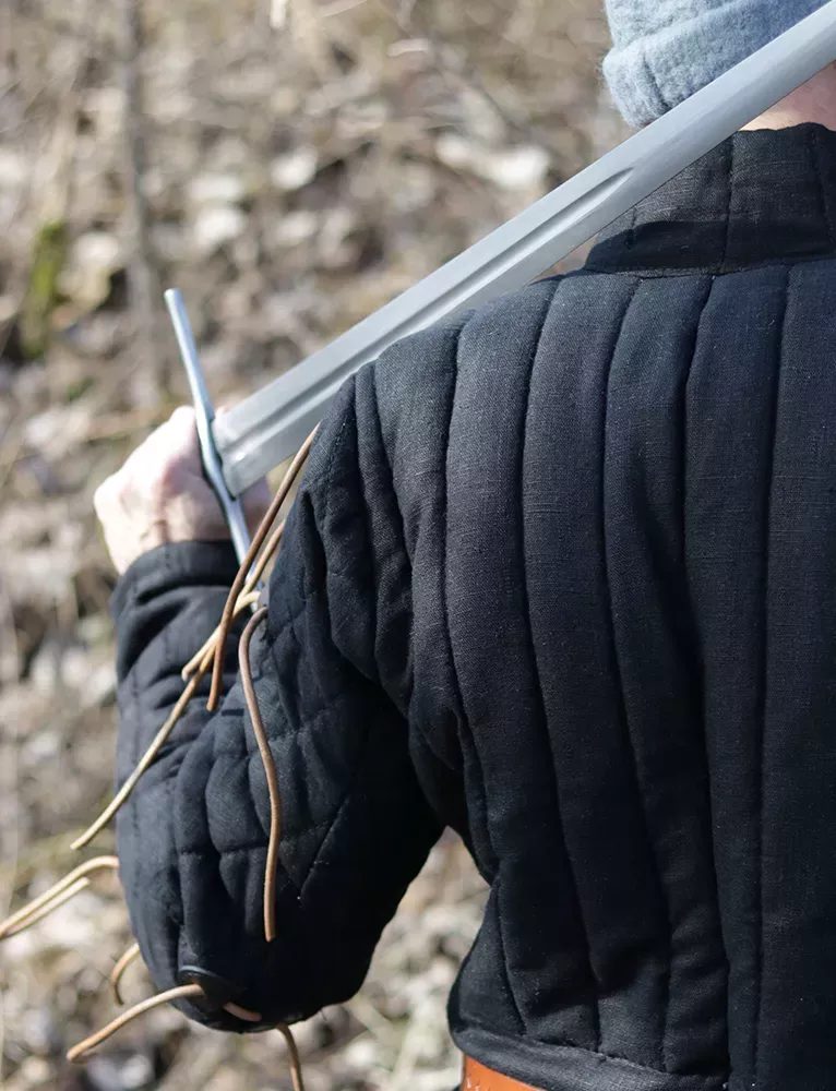 Dieser Gambeson wurde mit Blick auf die Bedürfnisse der Teilnehmer an Gruppenturnieren (Bohurts) entwickelt, die sich am meisten um ihre Sicherheit kümmern, ohne dabei an Beweglichkeit einzubüßen. Dieser Gambeson bietet großen Schutz und Amortisation vor allem für die verletzungsanfälligen Körperteile wie Nacken, Wirbelsäule, Schultern und Hüften. Er eignet sich perfekt für den Einsatz in Bohurt-Kämpfen sowie in Einzelturnieren. Mit diesem Gambeson können Sie das Verletzungsrisiko erheblich reduzieren.