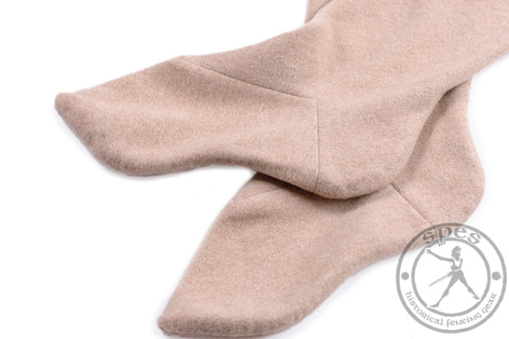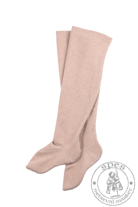 Unser mittelalterlicher Beinling hat Füße. Sie reichen bis zum Knie. Um den Tragekomfort zu erhöhen, empfehlen wir, diese mittelalterlichen Strümpfe mit Lederstrumpfbändern (nicht im Set enthalten)