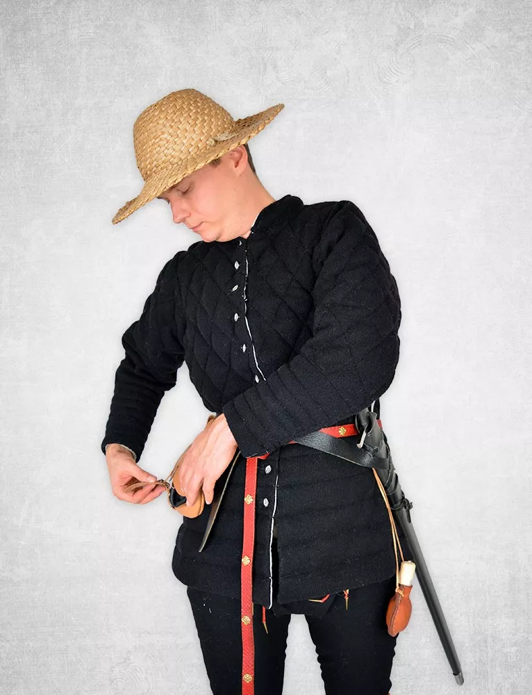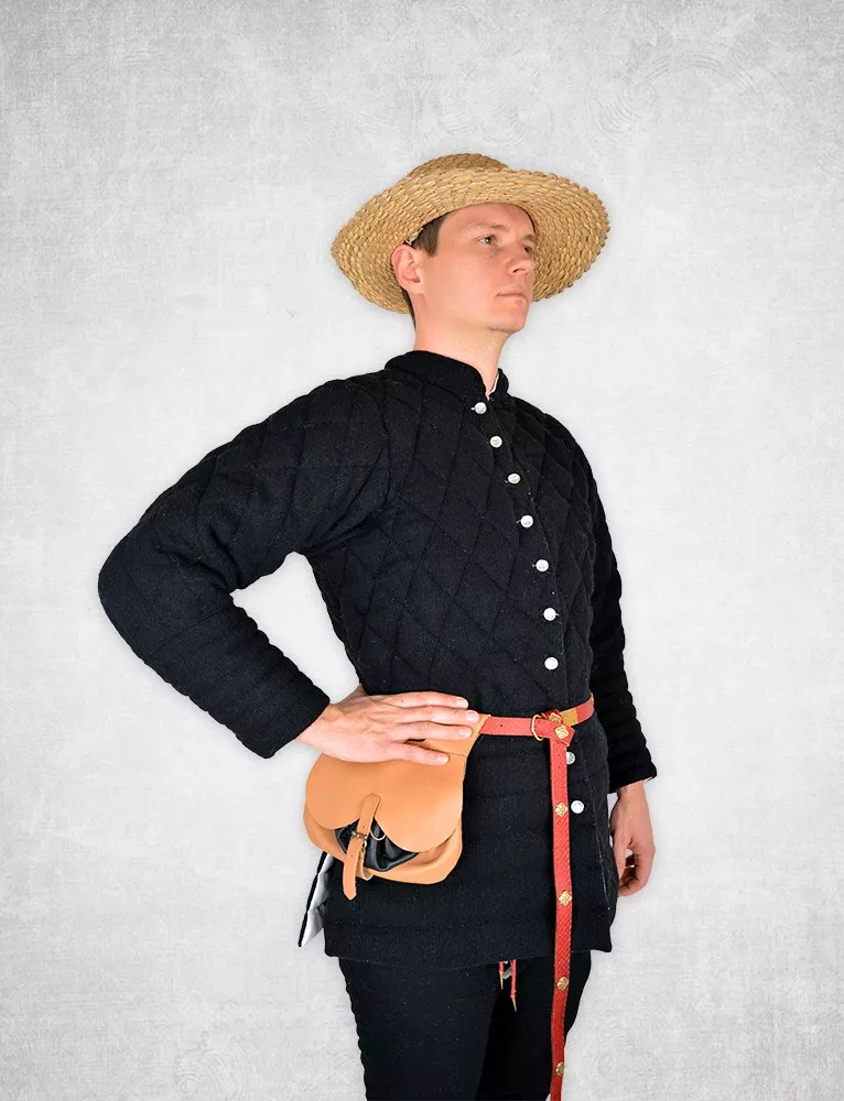 Der Wollgambeson „Hannover“ ist eine zivile Variante unseres Leinengambesons. In der Vergangenheit dienten Rüstungen oft als zivile Mittelalterkleidung. Der Wollgambeson ist ein Beispiel dafür - er basiert auf der Kleidung, die von Soldaten getragen wurde. Genau wie die Leinenversion formt dieses gesteppte Wams den Körper und bringt die Brust zur Geltung.