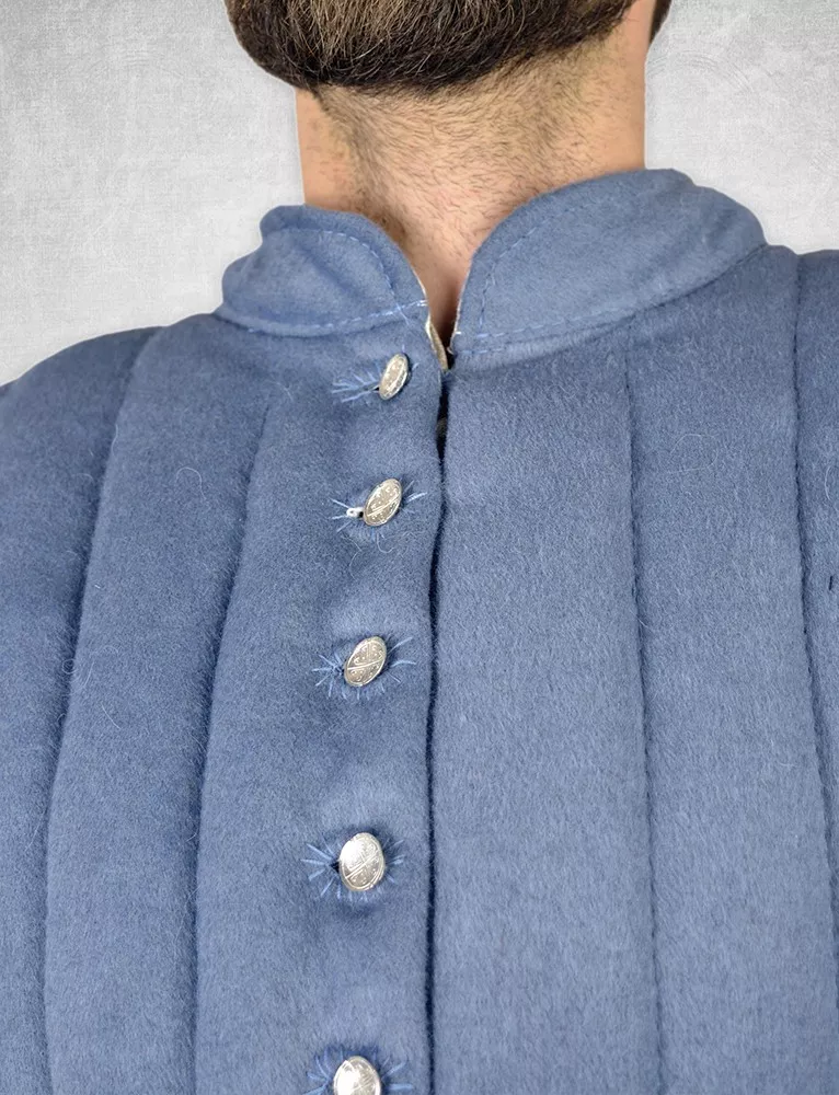 Dieses gesteppte Wams in der Standardausführung wird mit Blechknöpfen am Rumpf und an den Unterarmen zugeknöpft. Außerdem hat es einen niedrigen Stehkragen.