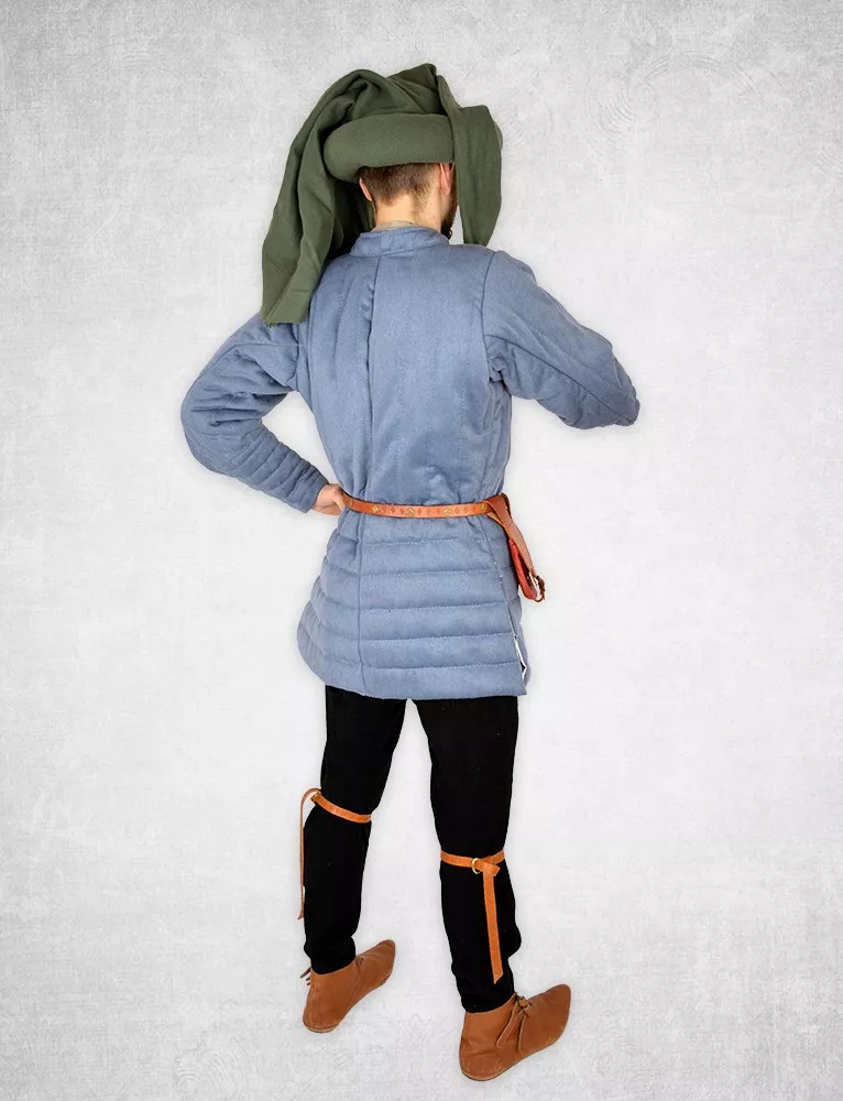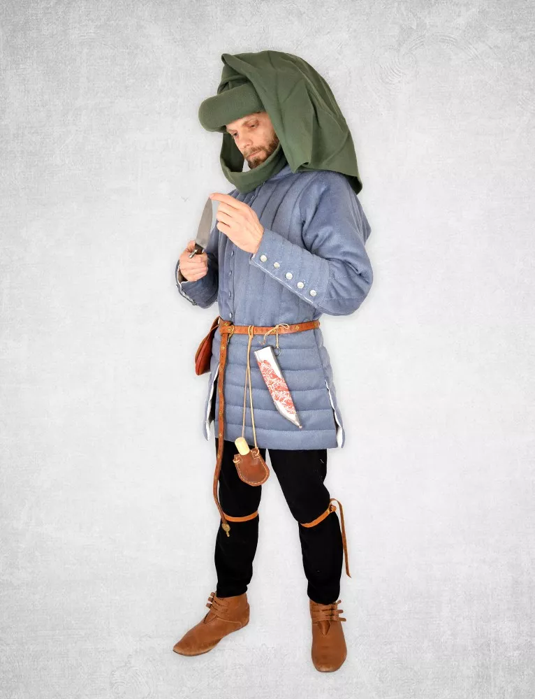Obermaterial und Futter dieses mittelalterlichen Gewandes sind aus Leinen gefertigt. Die Füllung besteht aus Wollfilz in 2 Dickenstufen: