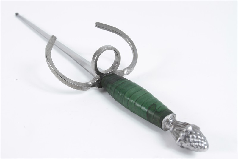 HEMA-Dolch von Péter Regenyei. Der Dolch ist nicht nur für Training und Schaukampf einsetzbar, er macht auch als Teil ein mittelalterlichen Gewandung eine gute Figur. Klingenlänge: 365 mm Grifflänge: 160 mm PoB: 5 mm Gewicht: 410 g Durchmesser des Rings: 40 mm Breite der Parrierstange: 120 mm Der Griff ist mit Leder umwickelt.