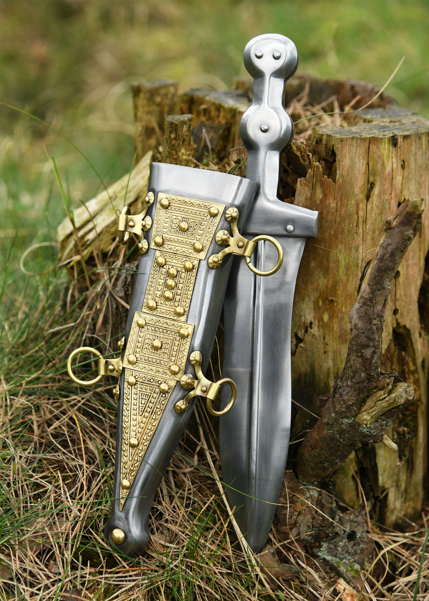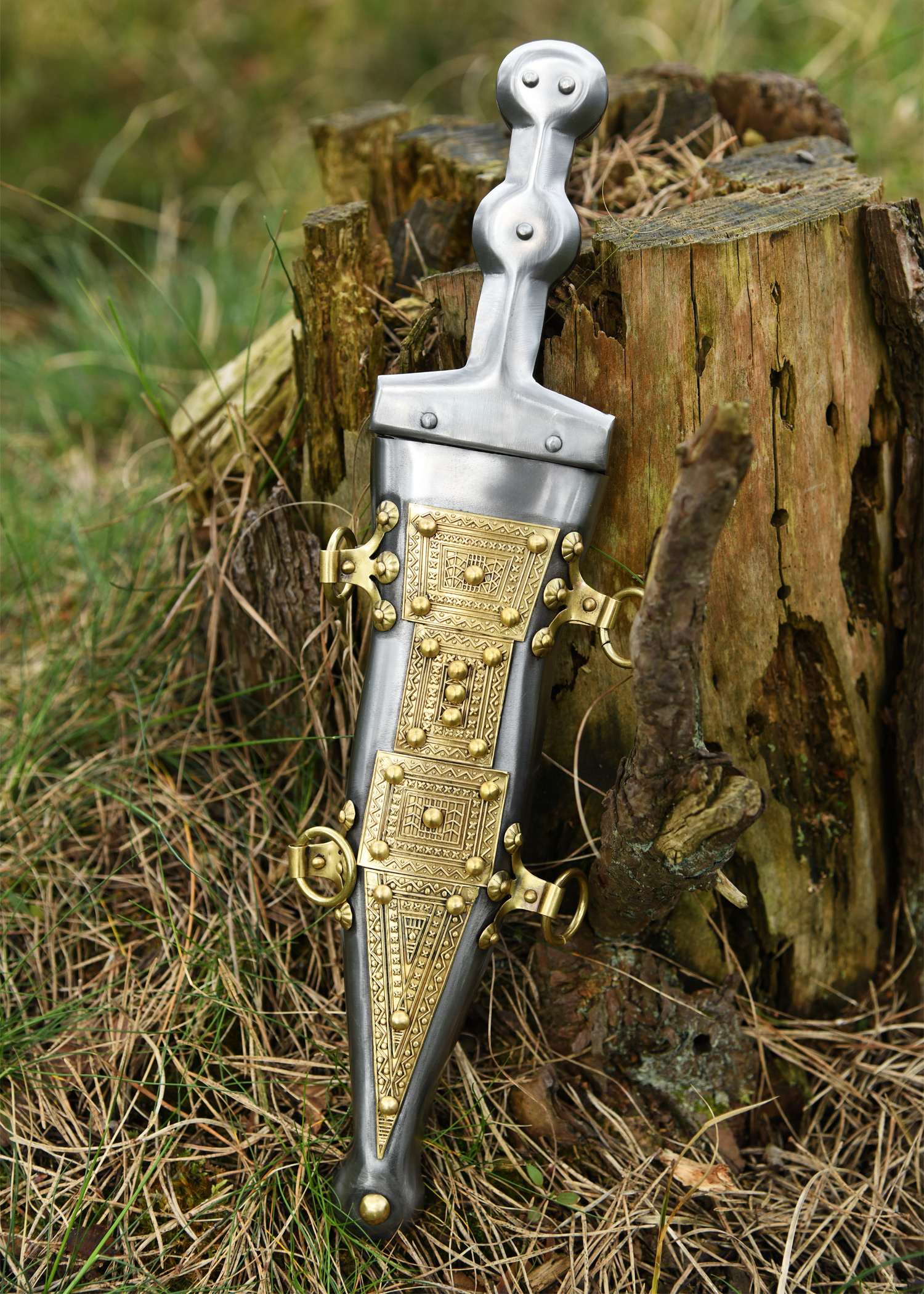 Der Pugio hat eine dekorativen Scheide aus Stahl, die reichlich mit