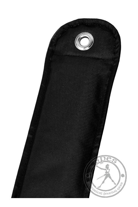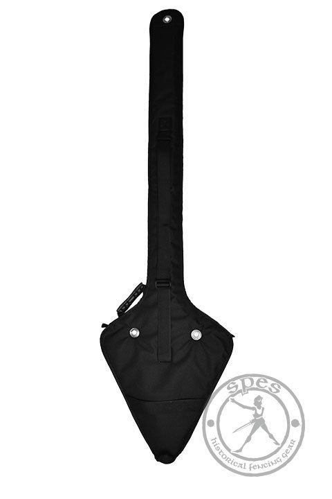 Tasche für ein Federschwert, in das auch ein Säbel, ein Rapier oder ein Einhandschwert passt. Hergestellt aus schwarzem,