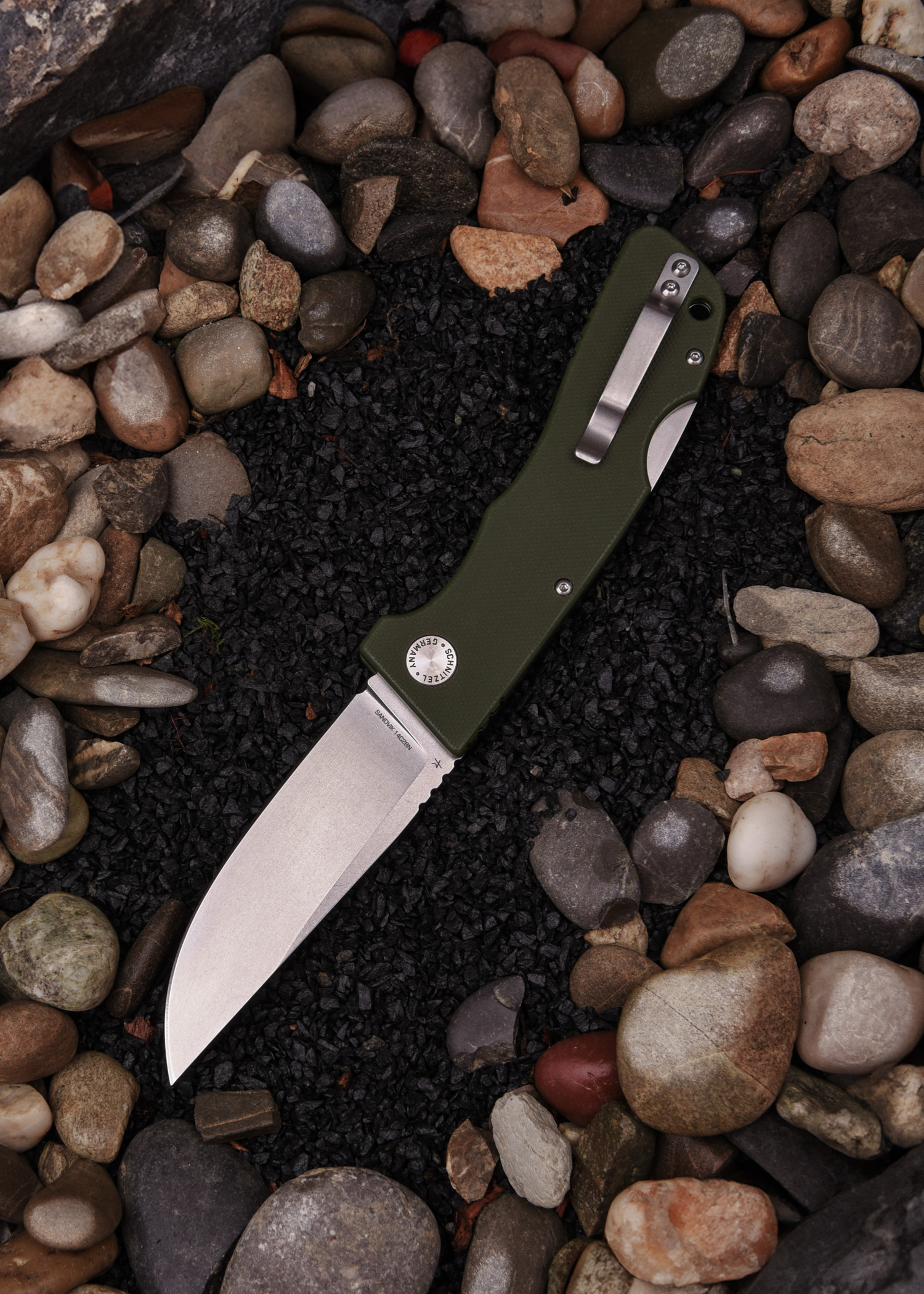 Die Klinge des Kvar ist aus dem bei uns schon bekannten Schwedenstahl Sandvik 14c28n gefertigt und ist ca. 9,2 cm lang. Das Finish der Klinge ist je nach Variante stonewashed oder blackwashed (Vacuum Titanium Coating). Sie ist ca. 3,7 mm dick, ist flach geschliffen und läuft auf Washern aus Bronze. Wie schon beim Tri sind die flachen Griffschalen aus rutschfestem und robusten G-10 hergestellt. Zur zusätzlichen Verstärkung der 13,4 mm breiten Griffkonstruktion sind innerhalb der Griffschalen stabile Liner aus Edelstahl verbaut. Der Taschenclip lässt das Kvar sicher aufbewahrt in deiner Hosentasche verschwinden und ist auch für Linkshänder nach Belieben umsetzbar.
