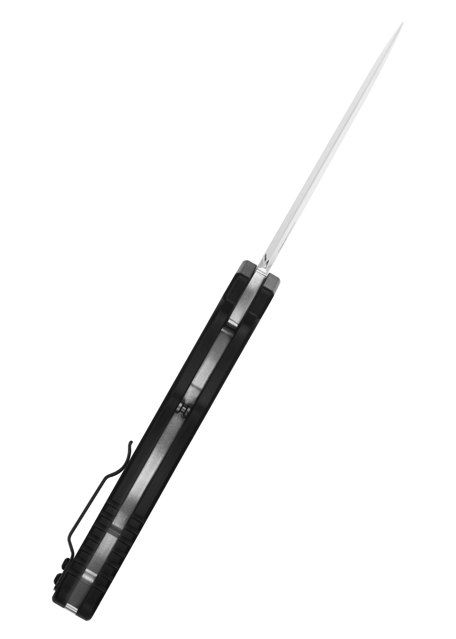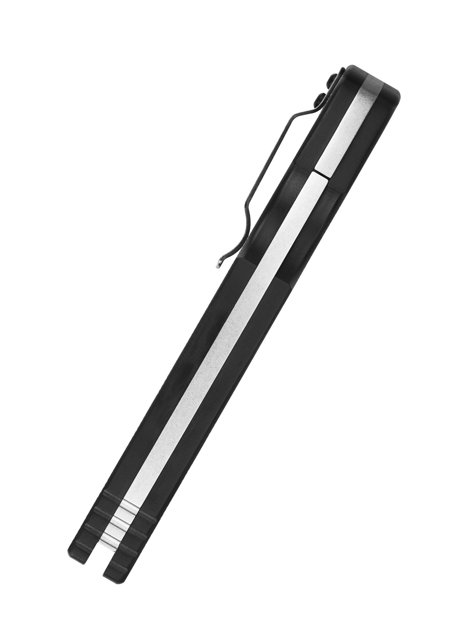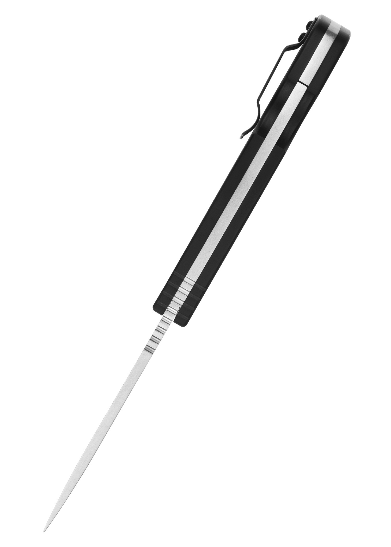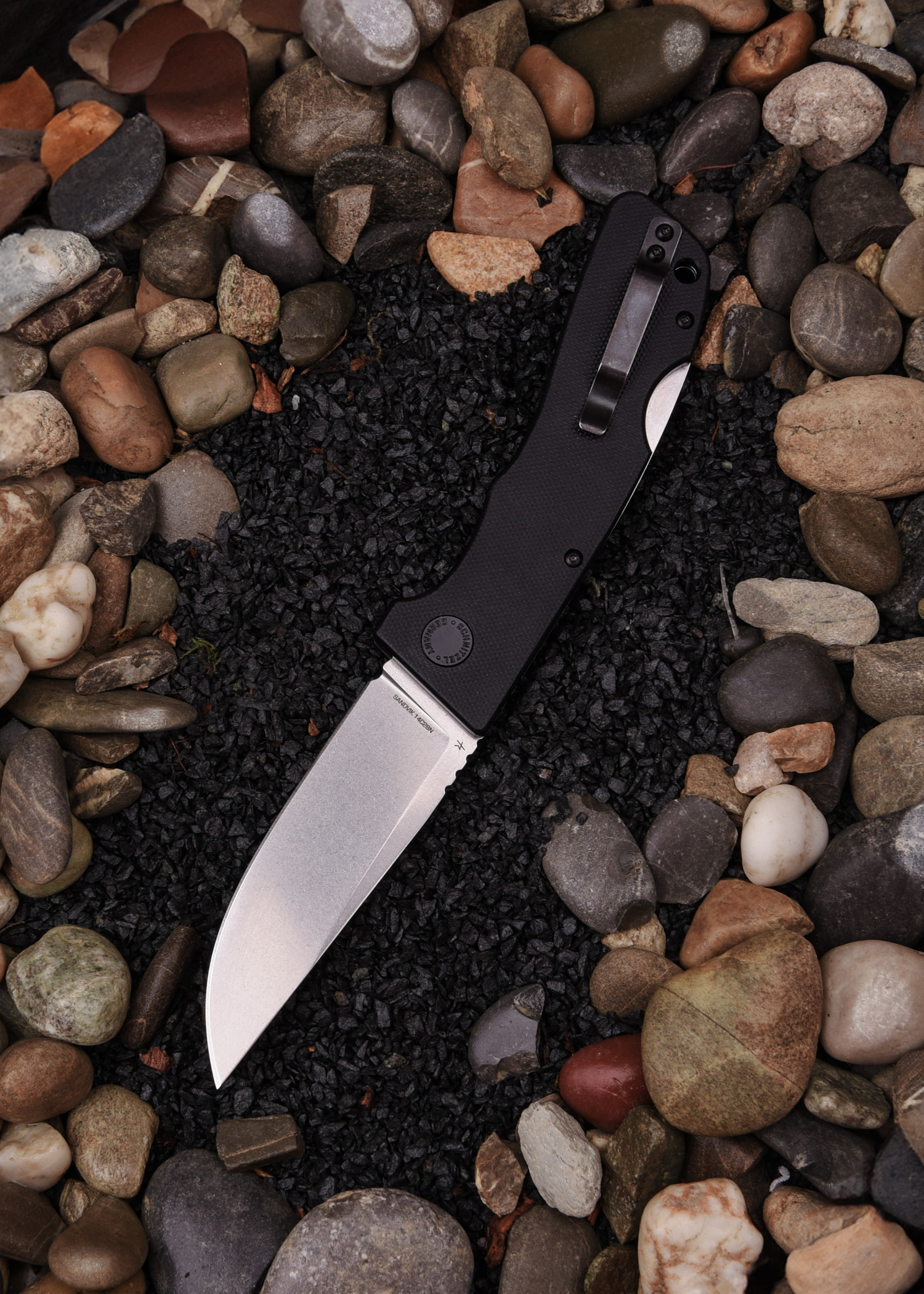 Die Klinge des Kvar ist aus dem bei uns schon bekannten Schwedenstahl Sandvik 14c28n gefertigt und ist ca. 9,2 cm lang. Das Finish der Klinge ist je nach Variante stonewashed oder blackwashed (Vacuum Titanium Coating). Sie ist ca. 3,7 mm dick, ist flach geschliffen und läuft auf Washern aus Bronze. Wie schon beim Tri sind die flachen Griffschalen aus rutschfestem und robusten G-10 hergestellt. Zur zusätzlichen Verstärkung der 13,4 mm breiten Griffkonstruktion sind innerhalb der Griffschalen stabile Liner aus Edelstahl verbaut. Der Taschenclip lässt das Kvar sicher aufbewahrt in deiner Hosentasche verschwinden und ist auch für Linkshänder nach Belieben umsetzbar.