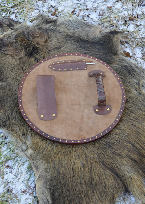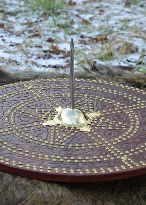 Diese schottische Targe ist wirklich ein Stück Geschichte. Während des Jakobiner Aufstandes fertigte der schottische Schildmacher William Lindsay aus Perth hunderte von Targen für die Armee von Charles Edward Stuart. Er machte deutliche Preisunterschiede zwischen Offiziers-Targen und gewöhnlichen Schilden von einfacheren Soldaten. Sehr wahrscheinlich wurde auch das Original unserer Replik von ihm hergestellt, denn es wurde 1746 in der Schlacht von Culloden erbeutet und mitsamt den jakobinischen Gefangenen nach London gebracht. Es befindet sich heute im Museum The Royal Armouries im Londoner Tower. Diese exzellente Museumsreplik von PrimusArms hat eine abnehmbare Spitze aus Stahl, welches es montiert, zu einer bösen Waffe macht. Die Targe hat einen Schildbuckel und dekorative Nieten aus Messing. Das Leder ist mit sehr schönen, keltischen Verzierungen geprägt. Der Schild ist aus handgefärbtem Leder prodzuziert, welches mit Messingnieten befestigt ist. Details: - Material: Holz und Leder - Durchmesser: ca. 46 cm - Materialstärke: ca. 1.7 cm - Gewicht: ca. 2,2 kg Bitte Beachten Sie: Die Abgabe an Personen unter 18 Jahre ist nicht zulässig. Bitte geben Sie deshalb Ihr Geburtsdatum in unserem Bestellformular an. Zusätzlich benötigen wir eine Kopie Ihres Personalausweises per E-Mail, Scan, Fax oder Post.