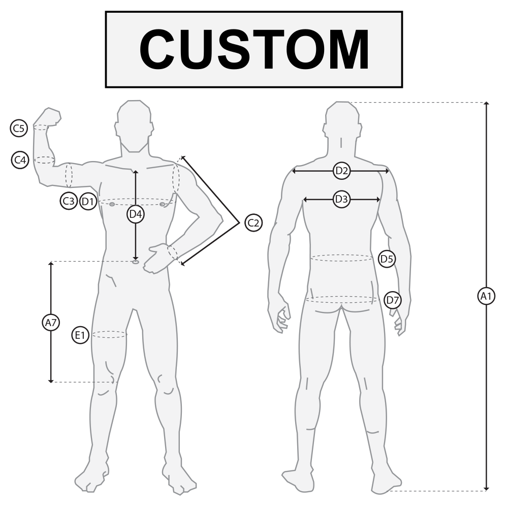 Für die Maßanfertigung der SPES Kleidungsstücke benötigen wir möglichst genaue Angaben. Die unten stehend Skizzen zeigen wie idealerweise gemessen werden sollte.
