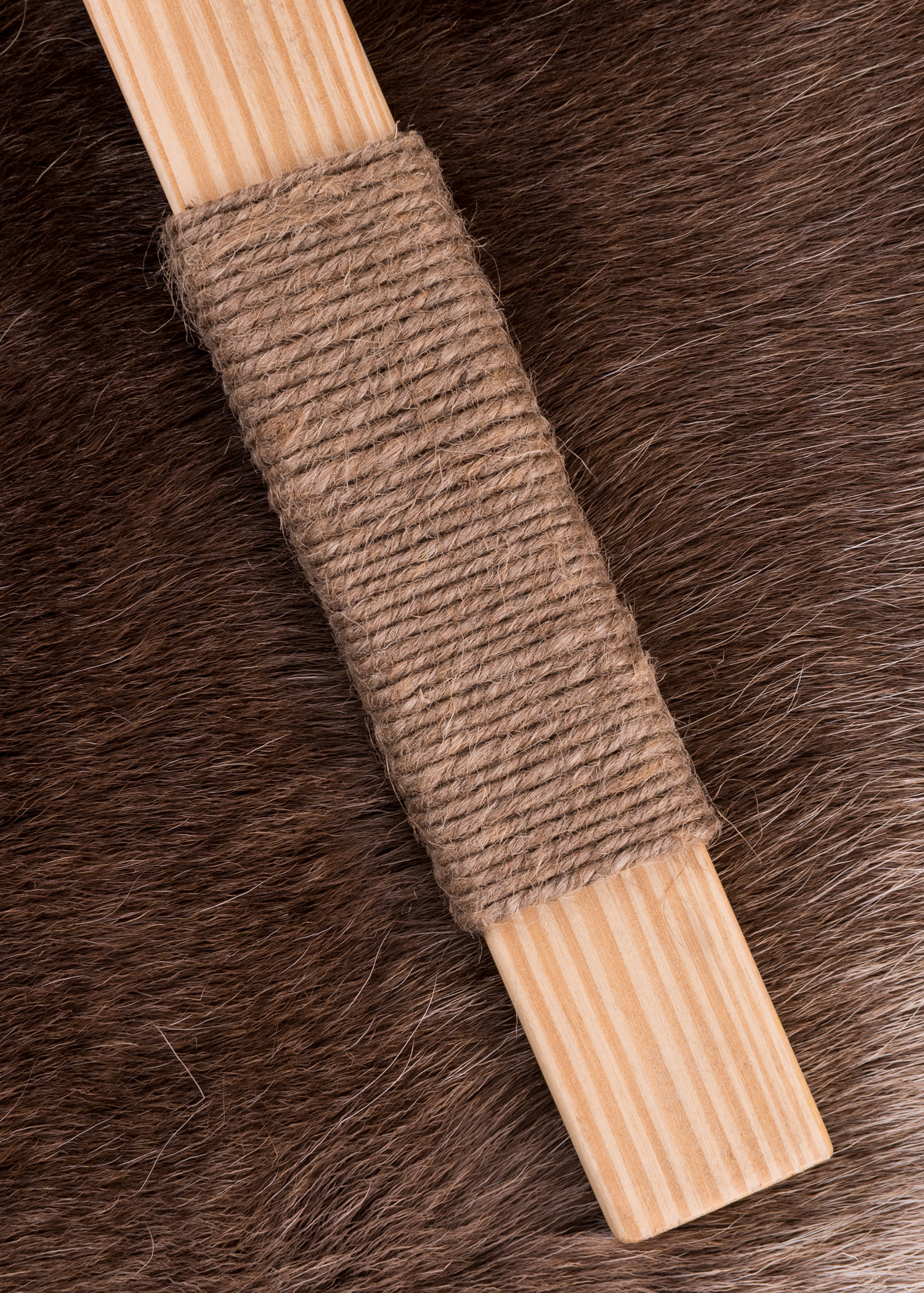 - Material: Holz (teilweise bemalt), Griffwicklung aus Jute