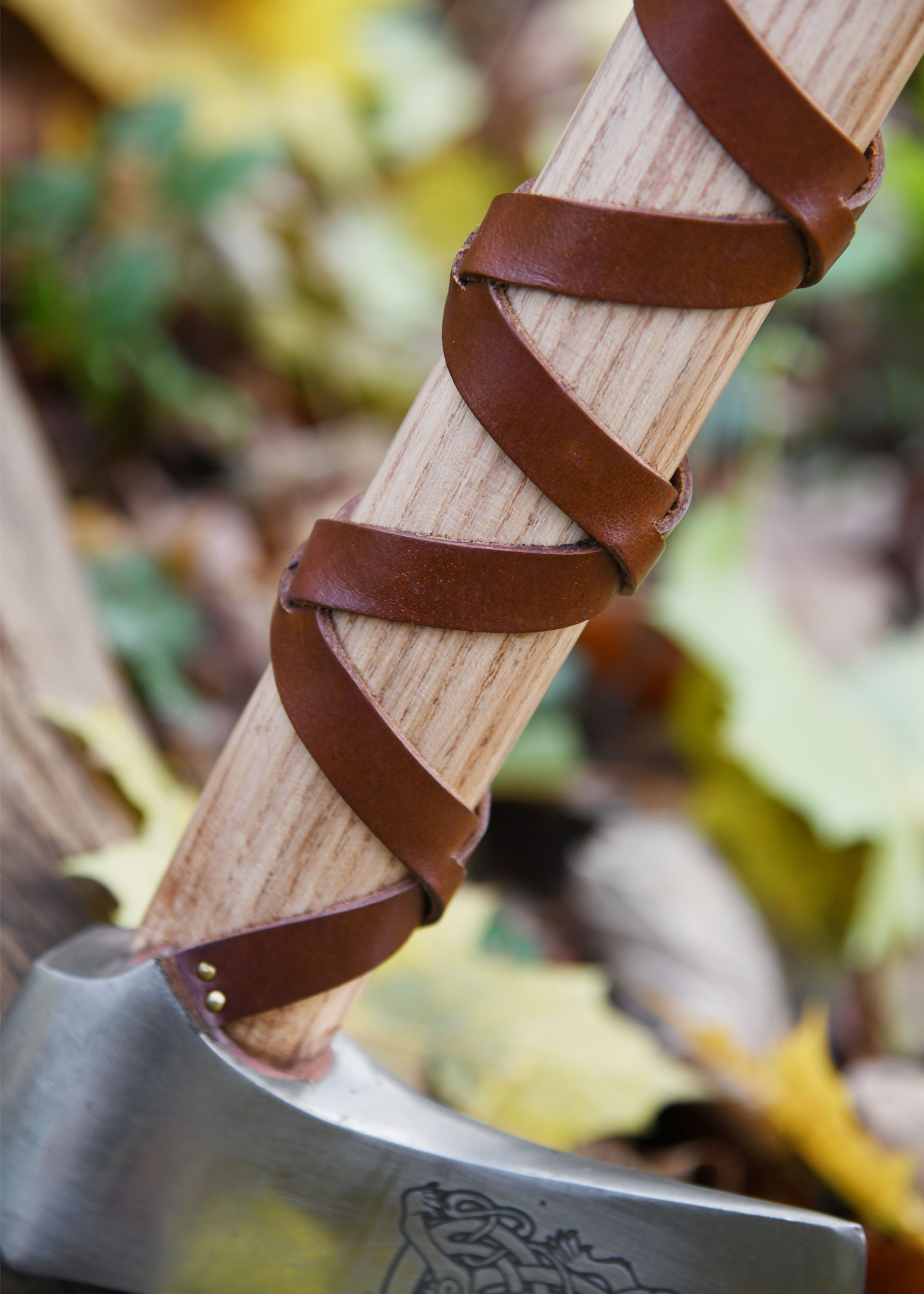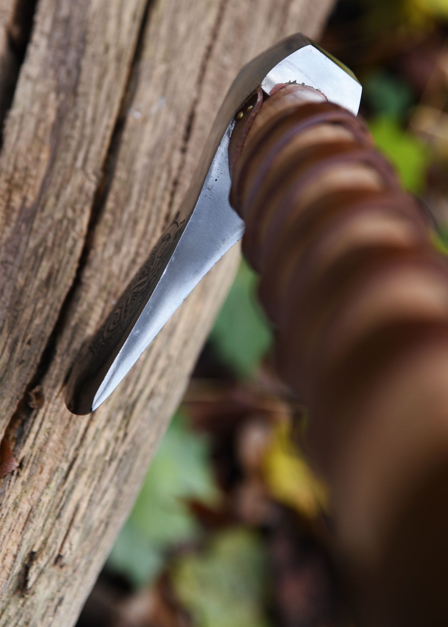 Wikinger-Axt aus Stahl, gegossen, Typ H, mit Gravur und Lederwicklung