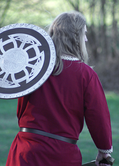 Wikinger-Tunika, dunkelrot In der Antike verstand man unter einer Tunika vorwiegend ein direkt auf der Haut getragenes Untergewand. Im Frühmittelalter wandelte sich die Tunika und wurde nun als Obergewand getragen. Es gibt zwar nur wenig erhaltene Fragmente, jedoch recht viele zeitgenössische Abbildungen, wie z.B. der Teppich von Bayeux oder Miniaturen, welche die mittelalterliche Kleidung und ihre Tragweite zeigen. Unsere frühmittelalterlichen Tuniken sind diesen Quellen weitestgehend nachempfunden. Sie sind weit geschnitten, eine Taillierung wurde im Mittelalter mit einem Gürtel vorgenommen. Die Länge der Ärmel beträgt ungefähr dreiviertel des Armes. Diese Tuniken eignen sich sehr gut für Frühmittelalter-Darstellung, wie z.B. Wikinger, Slawen oder Kelten. Details: - Farbe: dunkelrot - Größen: S, M, L, XL, XXL - Material: 100% Baumwolle Größe Brustumfang Ärmellänge Gesamtlänge S ca. 120 cm ca. 49,5 cm ca. 95,5 cm M ca. 128 cm ca. 53,5 cm ca. 98 cm L ca. 136 cm ca. 58 cm ca. 106 cm XL ca. 144 cm ca. 61 cm ca. 112 cm XXL ca. 149 cm ca. 63 cm ca. 116 cm