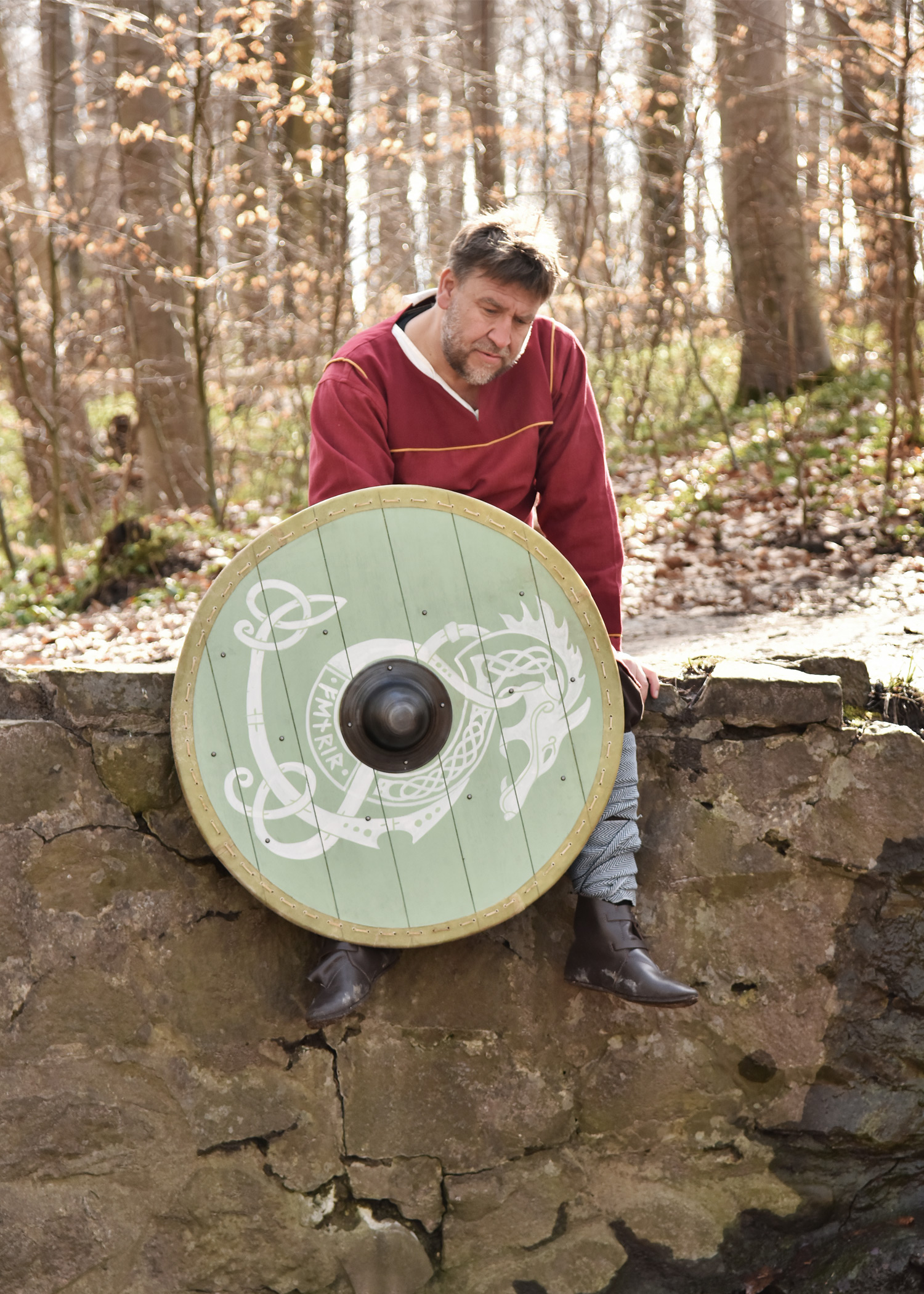 Obwohl dieser Holzschild etwas zu dünn für den Vollkontakt ist, bleibt er dennoch ein großartiges Accessoire für Reenactment, LARP, Bühne oder TV/Film und wird Deine Verwandlung in einen stolzen nordischen Krieger einfach perfekt machen. Außerdem ist er auch ein schönes Sammler- bzw. Ausstellungsstück oder Dekorationsobjekt für alle Liebhaber der Wikingerzeit.