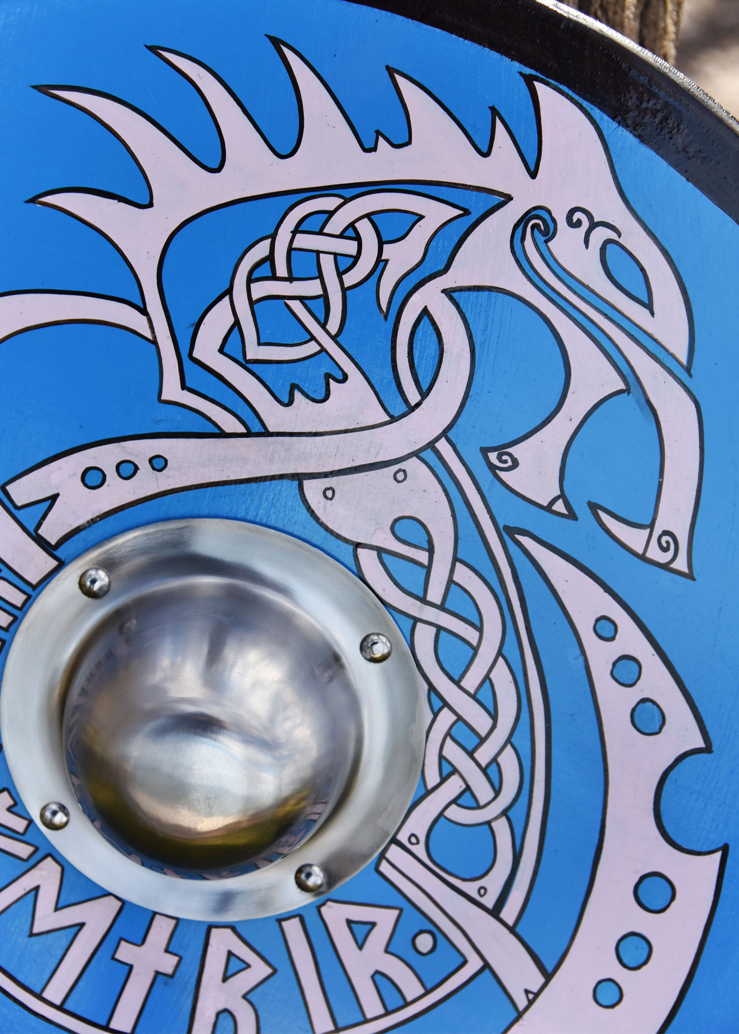 Der im Lieferumfang erhaltene Schildbuckel kann mithilfe der mitgelieferten Nieten leicht am angebracht werden, und bietet selbst für kräftige Wikingerhände genügend Platz. Die Rückseite des Schildes ist schwarz gestrichen und mit einem Faustgriff aus massivem Holz ausgerüstet.