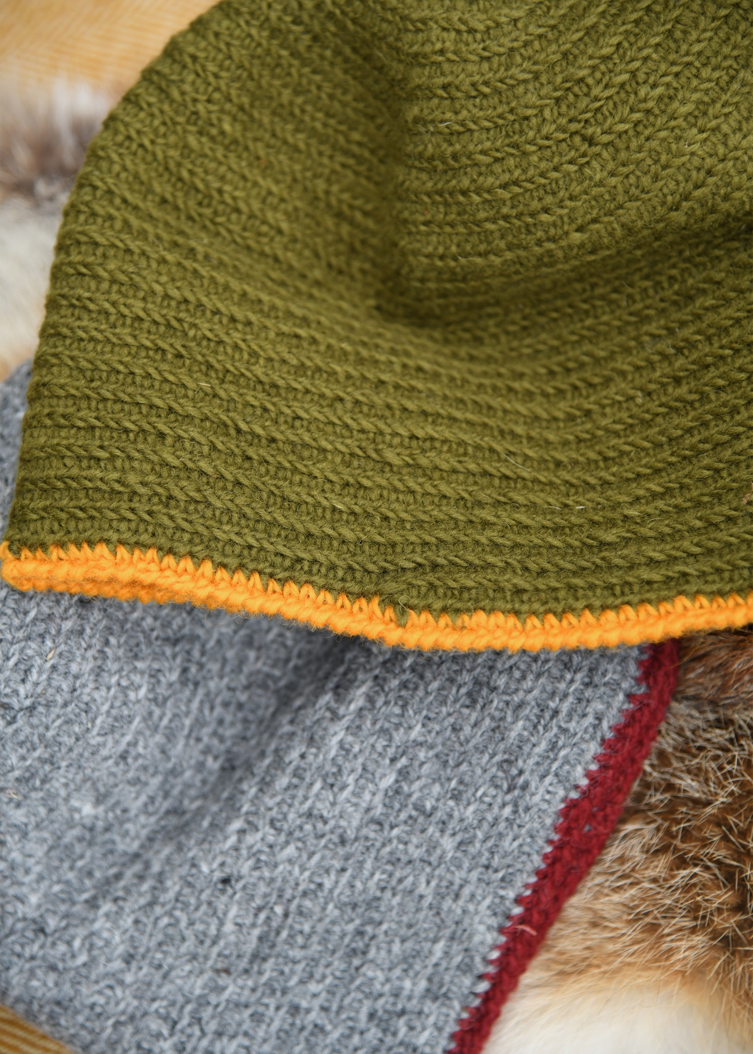 Gehäkelte Wollmütze in grau-weinrot – Historische Mütze