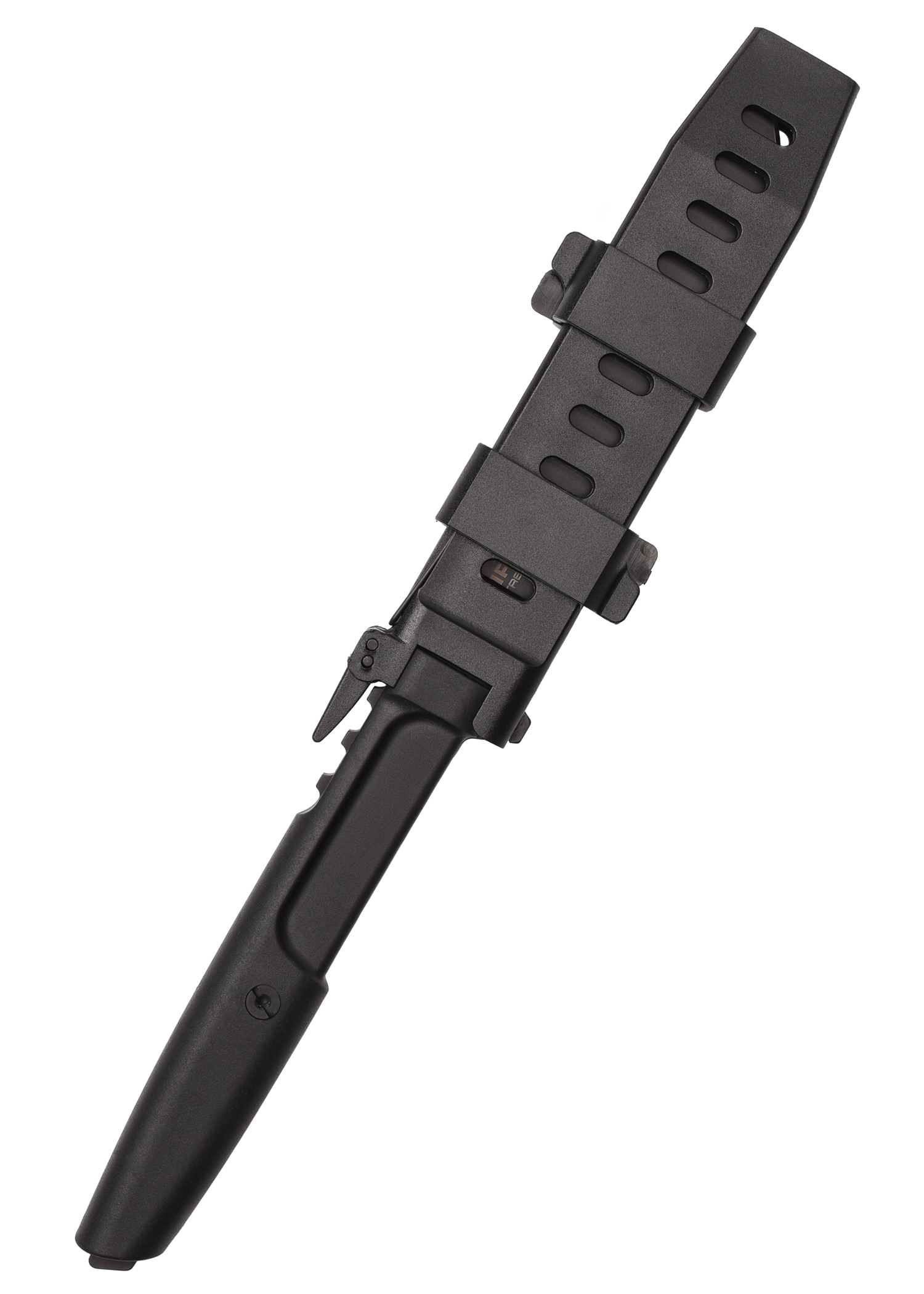 Die Nylon-Scheide ASPIS lässt sich leicht an Gürteln, Rucksäcken und M.O.L.L.E.-Systemen befestigen und ermöglicht so ein stabiles und sicheres Tragen des Messers. Damit ist es ein ideales E.D.C.-Werkzeug für taktische Einsätze, im urbanen Bereich, im Outdoor-Bereich, zum Überleben, im 4×4-Geländeeinsatz, beim Camping und darüber hinaus.
